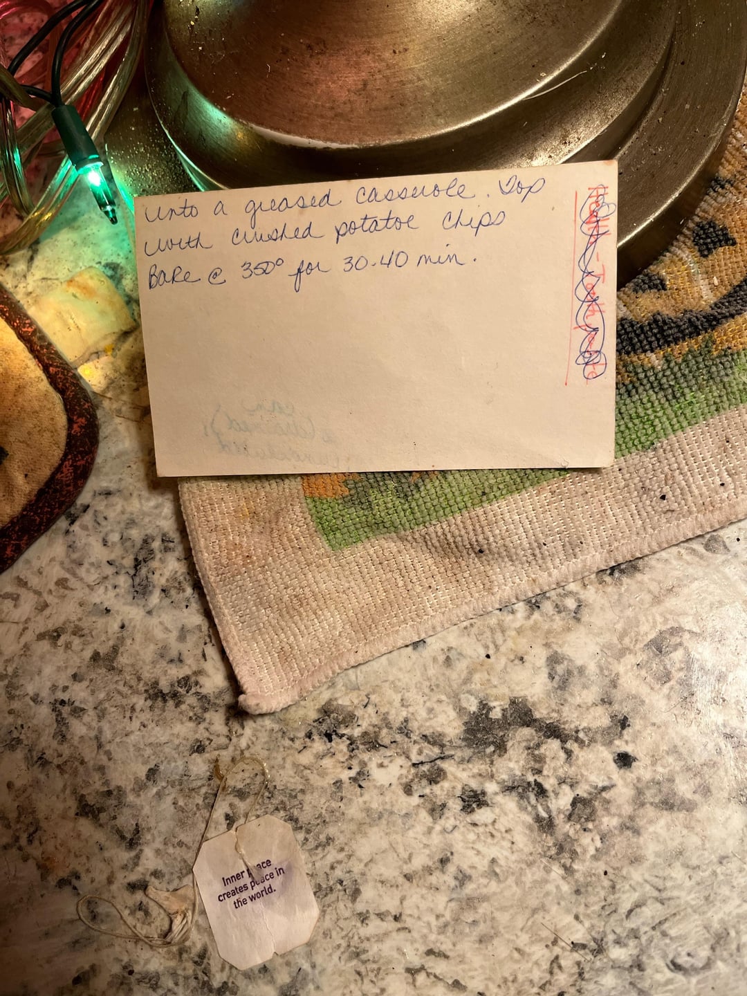 here is my grandma nonnie’s “dinner in a dish” recipe from the 1930’s 🥰 we’ve made it once, and i can attest to the fact that it’s delicious. enjoy & bon appetit!