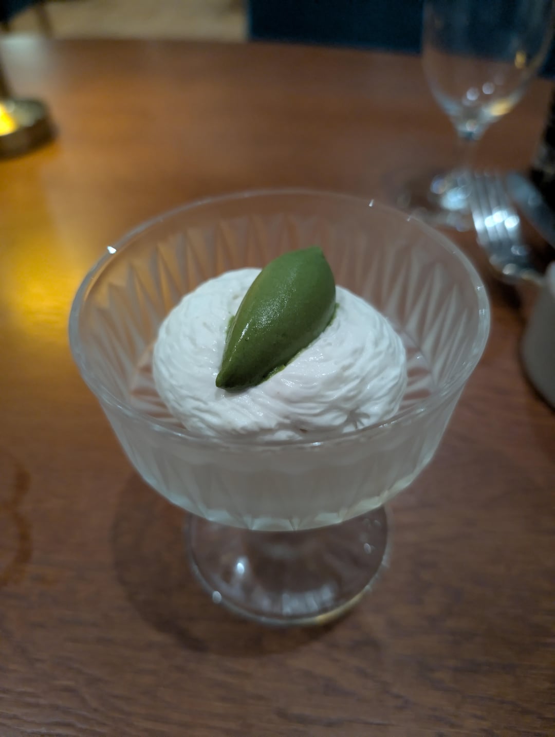 1. Rich foie with a nice sweetness from the fig. Meringue base, lovely plum flavour yet still savoury. Creamy, slightly savoury, spinach at the bottom with a few smoked almonds