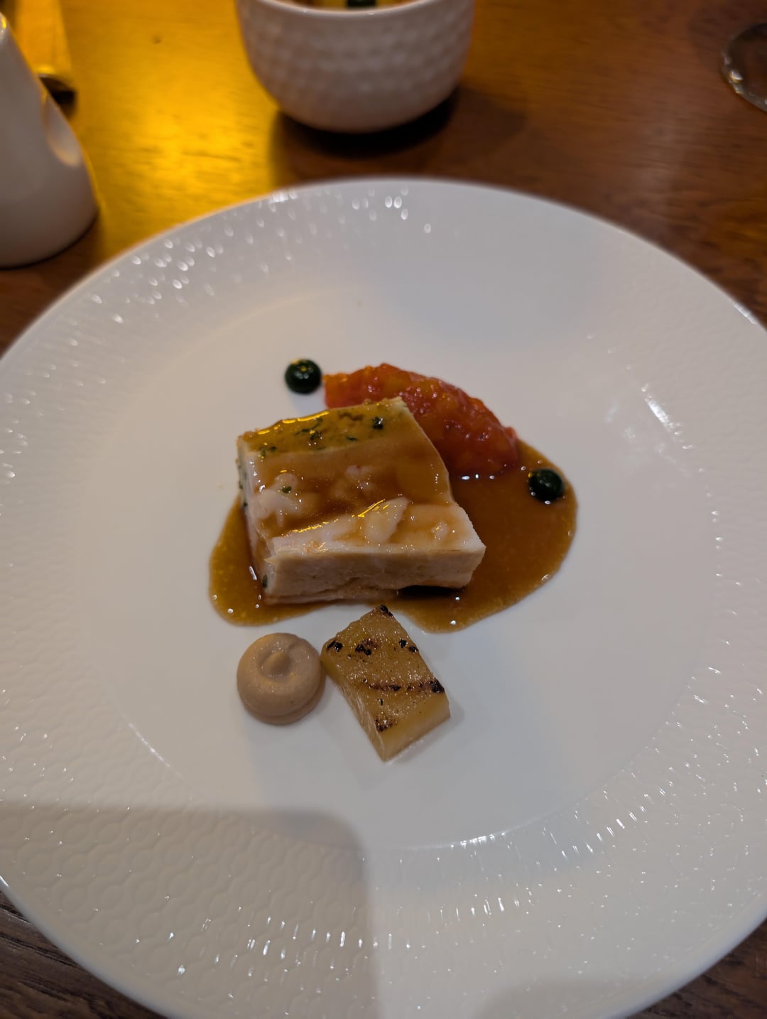 6. Lovely sweet scallop, leek and lobster terrine, slight spice, truffle and yuzu worked wonderfully. Another great course