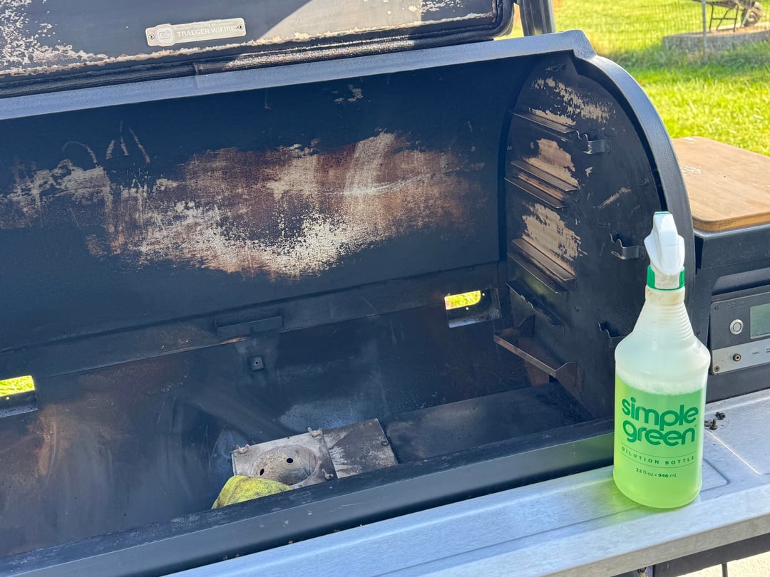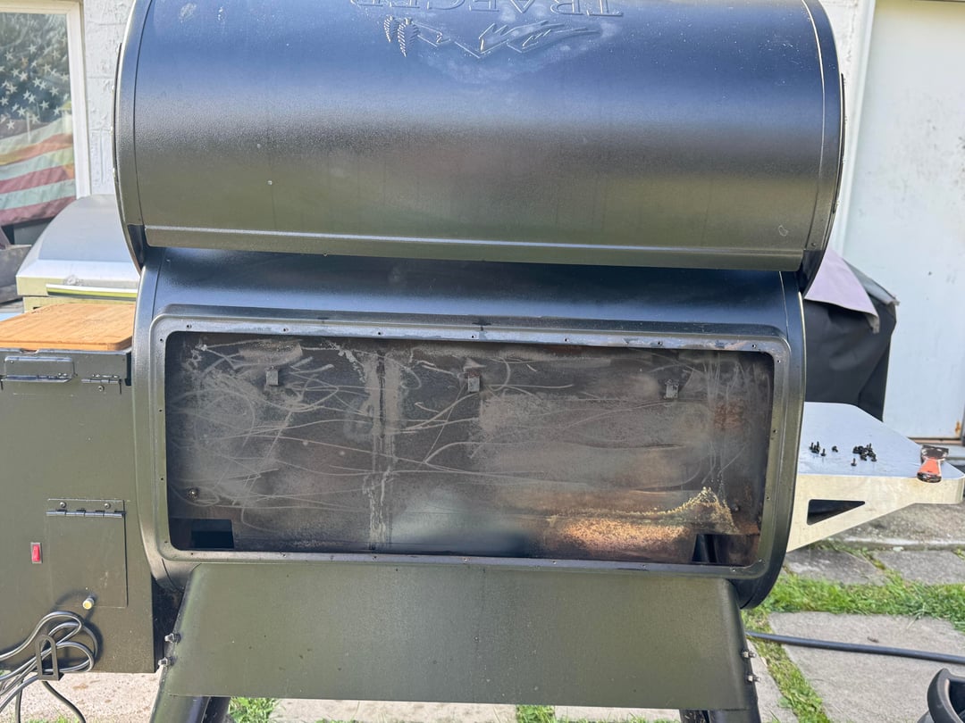 I noticed buildup on the back plate of my timberline 1300. I recommend vacuuming that out annually. This is my first time after owning this for three years and there was quite an alarming amount of dust accumulated at least 2 inches in the back bottom area inhibiting airflow. I simply love simple green. It works so well I should’ve used it more often as this is how I’m gonna leave it. Can’t stay looking new forever. It’s a smoker for Heaven sake.