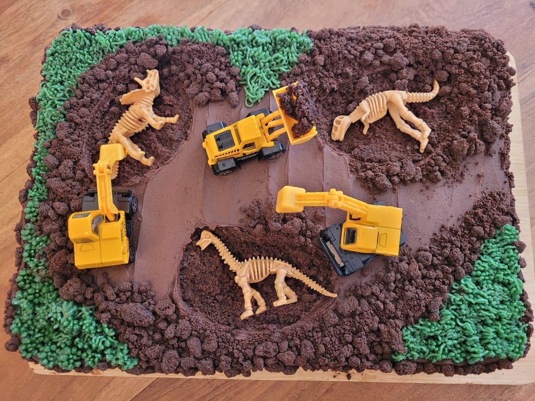 Awesome. A 3 year old just came up to you and said that he wanted a cake with dinosaurs being dug up in an ancient burial ground site?