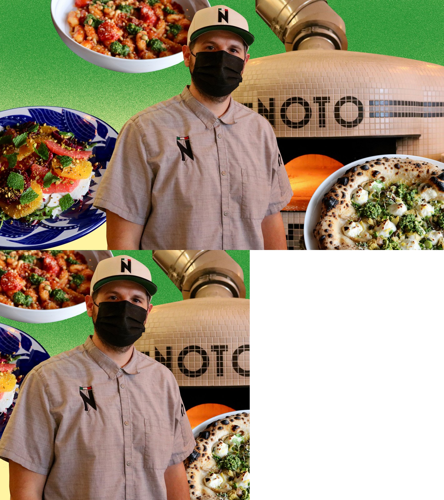 When customers start arriving at exactly 5 p.m. for dinner, families shuffle along to their tables, excited children staring wide-eyed into the fiery oven, which can be seen from nearly anywhere in the restaurant. Two unmasked women saddle up to the bar and order cocktails. In the city, I usually wouldn’t dream of going to dinner before 8 p.m., but out here, this is a very normal time to dine. Sieve settles into his pizza nook, where, before the pandemic, he’d do at least 130 pizzas by the end of the night. “We made our space a little too small, because I was like, ‘I don’t even know if people are going to order this pizza,” Sieve said. “But it’s literally at least 2:1 pizza to entrees. That’s been very overwhelming.” Though many pizzerias sell more pepperoni than anything else, Noto’s bestseller is unquestionably the Italiano, which features San Marzano tomato sauce, fresh mozzarella, Calabrese sausage, basil, olive oil, and Parmigiano-Reggiano. “That pizza alone has paid for this oven many times over,” Sieve said, laughing.