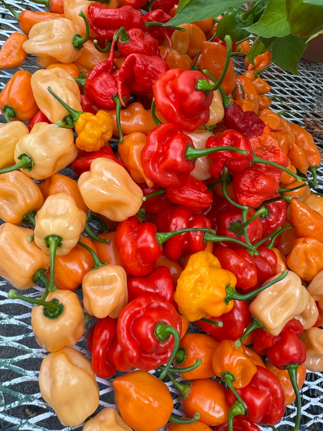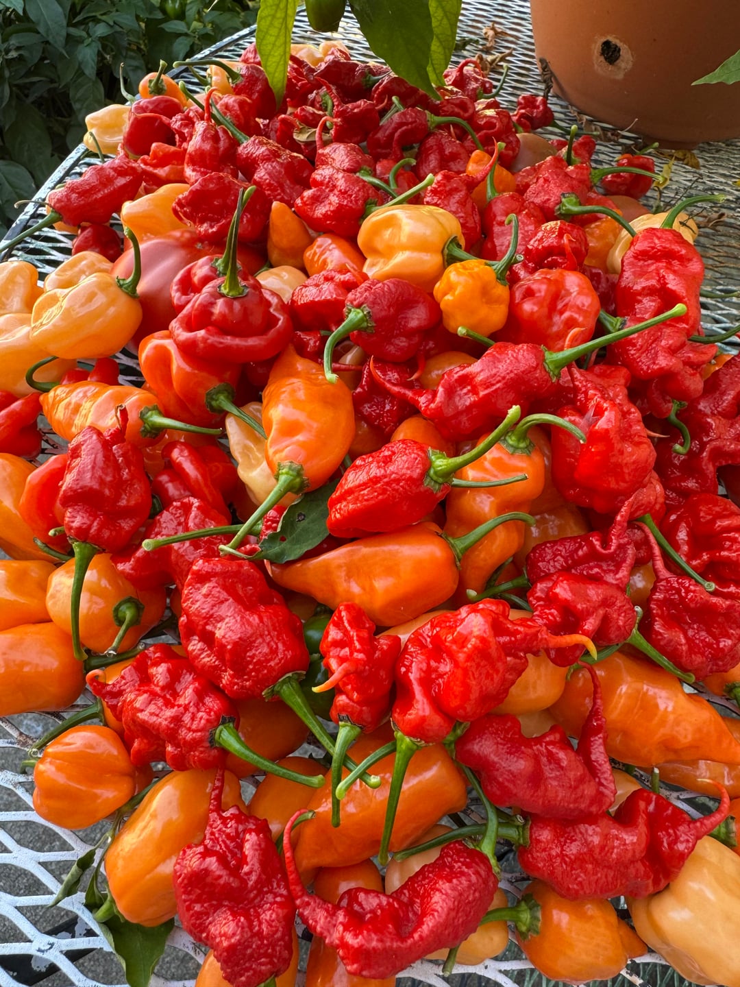Habaneros, scotch bonnets, primotaliis, and habanadas. It's been a fun season, only have maybe a couple of weeks or so before the nights become too cold here in 5b, but I'm really enjoying the last few colorful harvests before it ends.