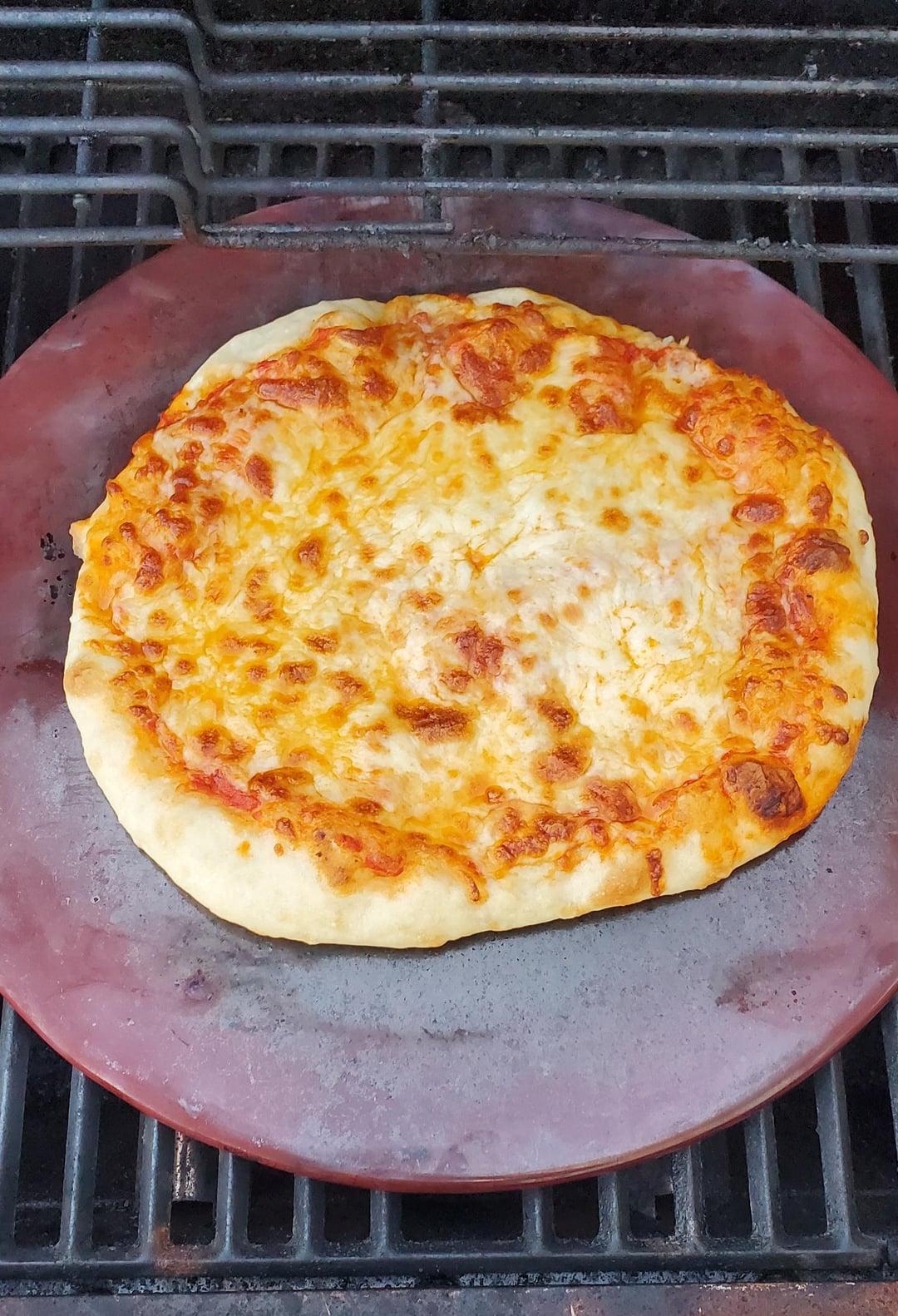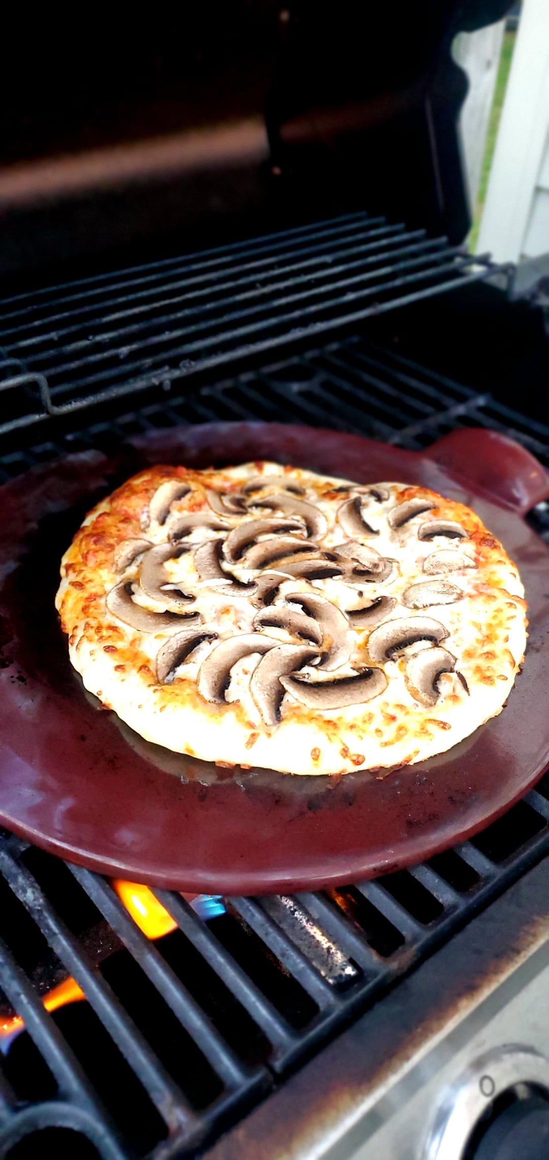 if you don’t have a pizza oven, the grill the is the correct place to cook a pizza