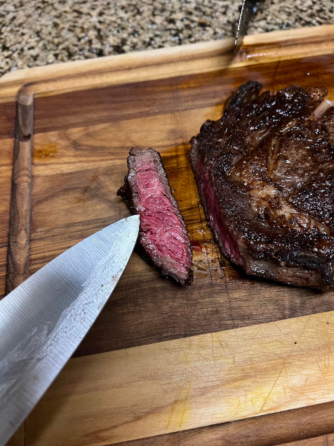 That, sir, is a perfect rare on the medium rare side of rare and I’d >! fuck the shit out of it !<! And I don’t say this often about steaks.