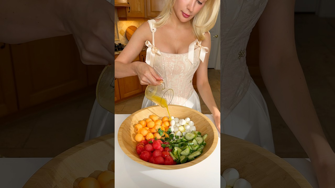 A colorful, sweet-and-savory salad with juicy watermelon, melon, creamy mozzarella, and crisp cucumber tossed in a light honey–lime dressing. Perfect for hydration, glowing skin, and a balanced protein boost.