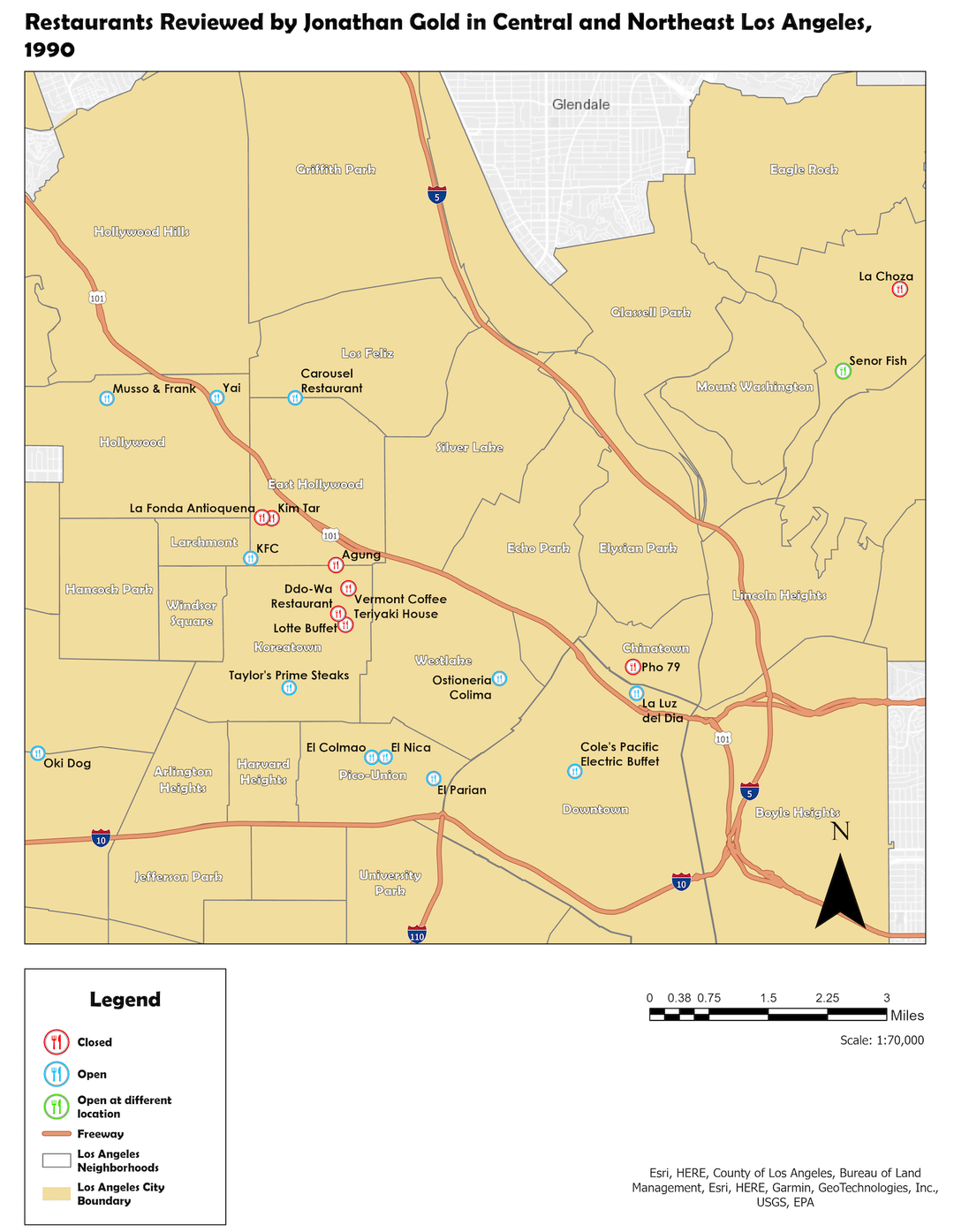 Good morning and Happy Labor Day! I am an urban planning student at UCLA and wanted to do a project this summer making maps. I decided to go into the archive and read all of Jonathan Gold's reviews from 1990. He wrote 33 reviews in that year, and I wrote about some interesting things I found and made some maps of the restaurants. I hope this is interesting and would love if you read it!