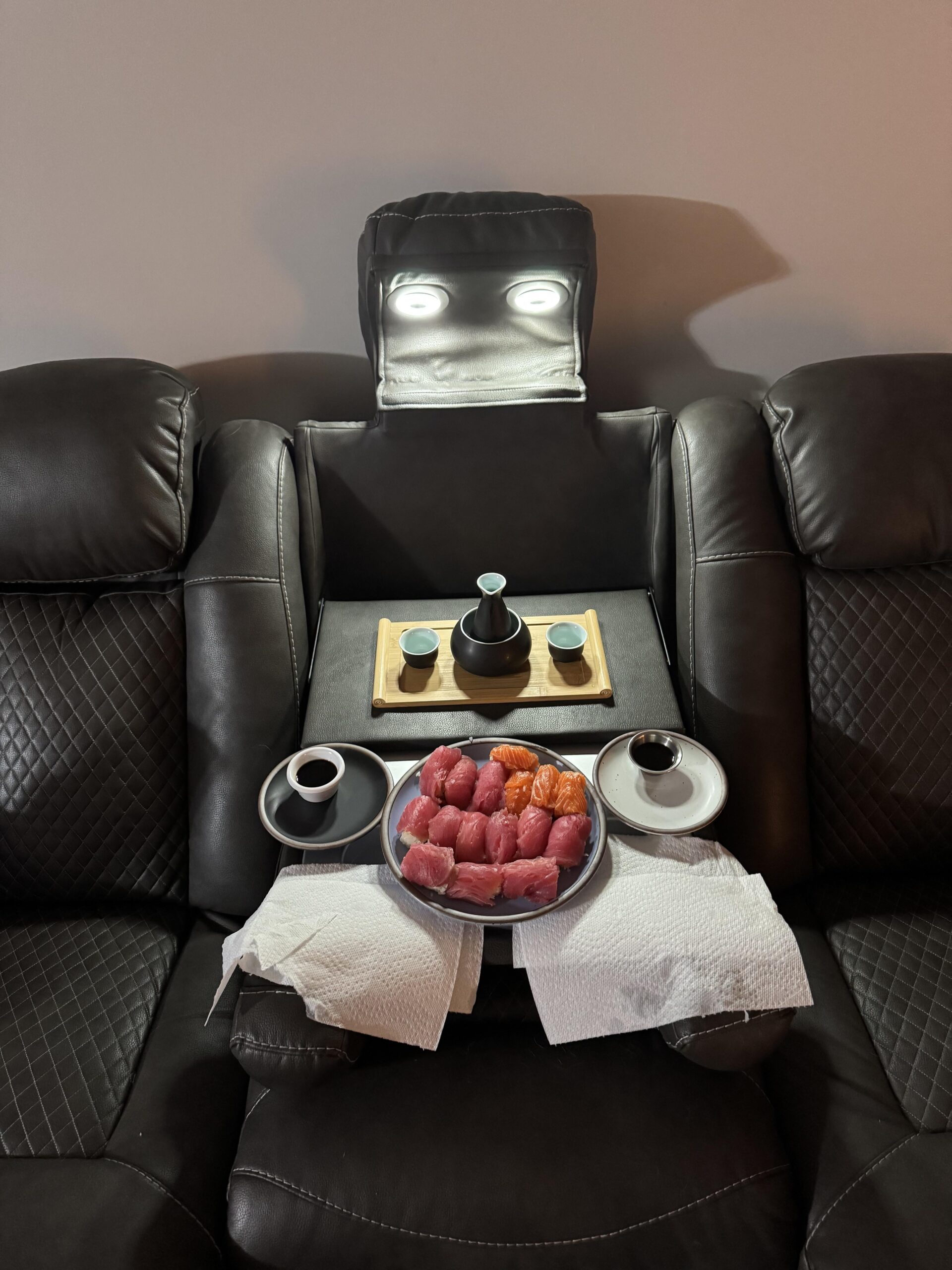capt7430 4 months ago Ngl, that looks like a robot sitting on a couch getting ready to eat some sushi.