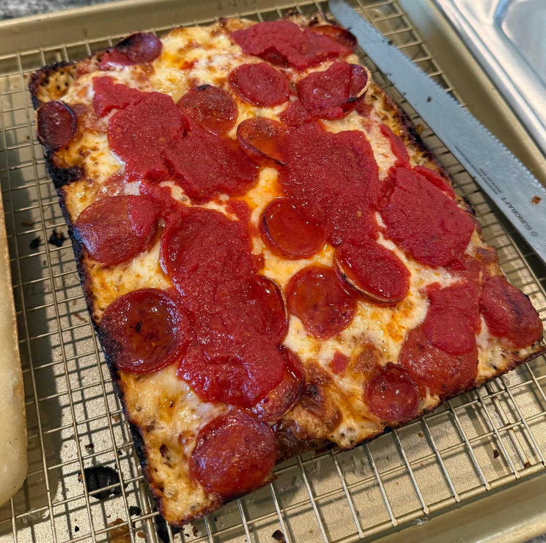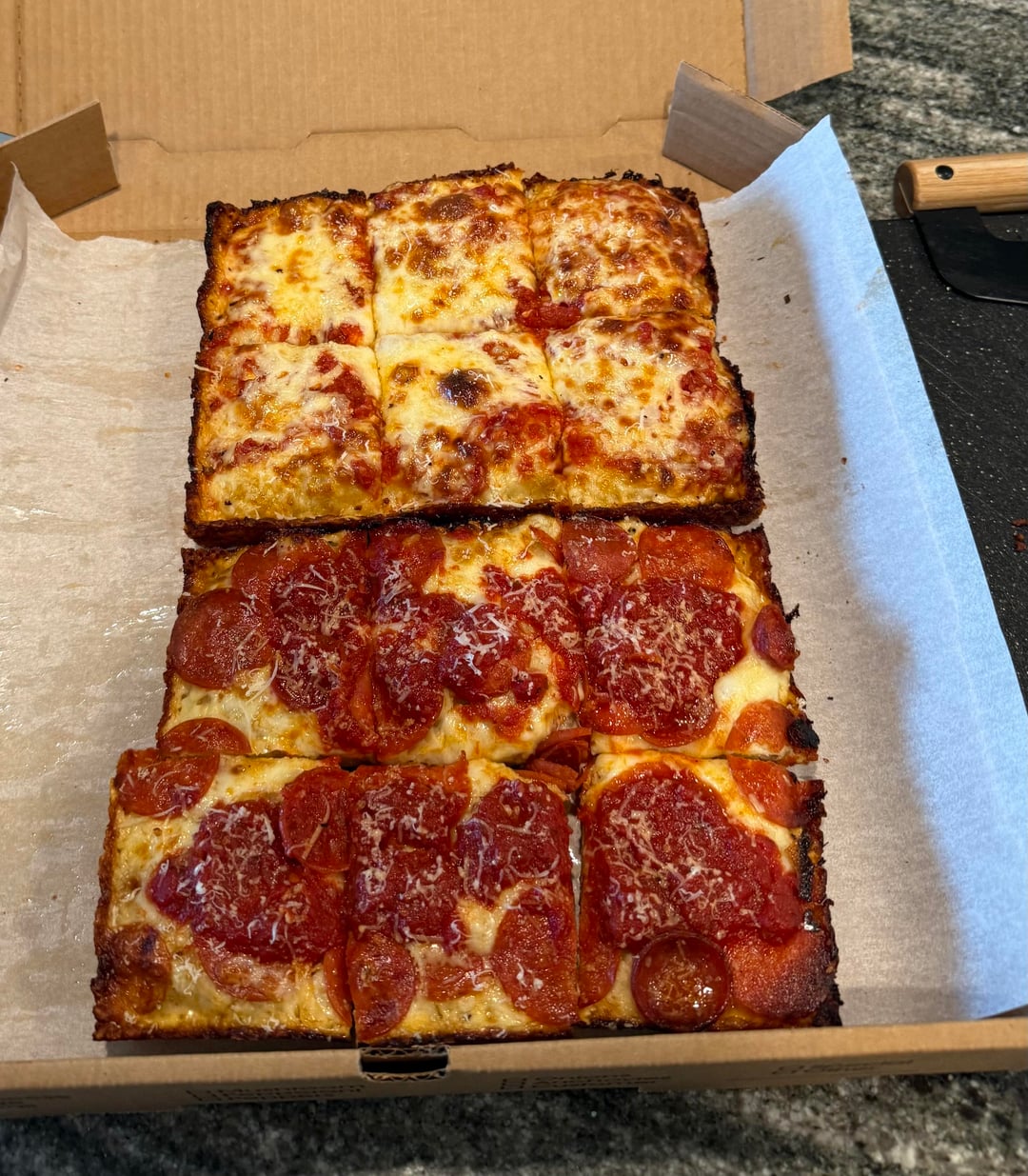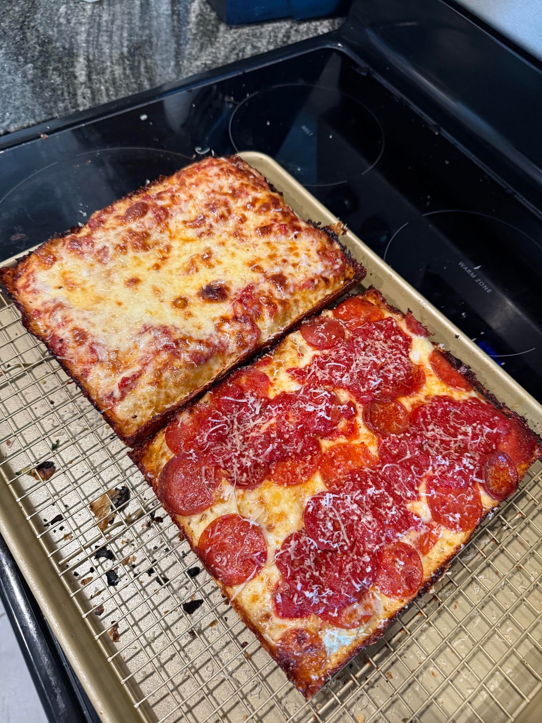 Detroit pies are a delicacy that every pizza nerd should try. That crispy edge is just crack. 😋