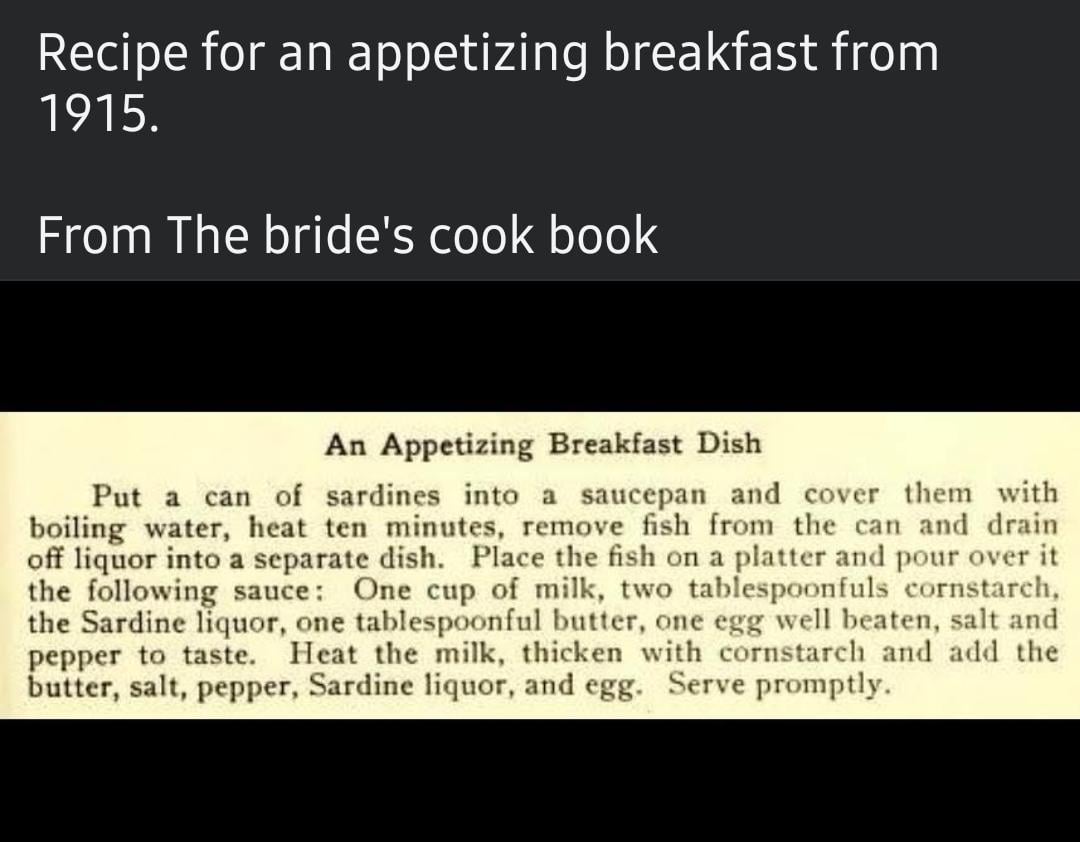 The idea behind this actually sounds good but it’s written in a way that complicates it more than needed. Like who wants to open a boiling can of sardines? Then they say to pour over the sauce before even explaining how it’s made.