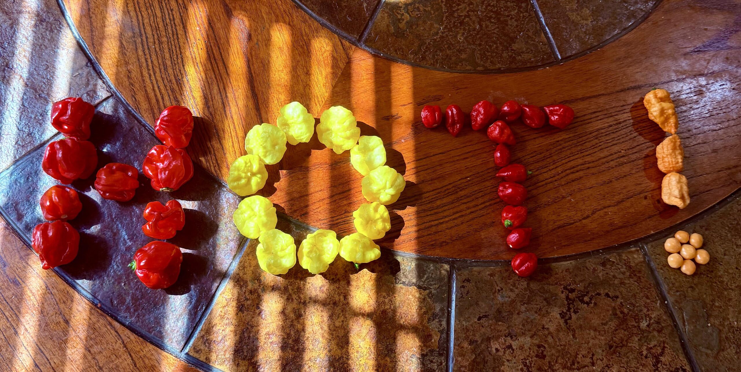 Giant red hab, KSLS, my Thai x Trinidad Moruga Scorpion Hybrid, Pseudo-spiral Orange, Aji Charapita Peach. by Washedurhairlately Dining and Cooking