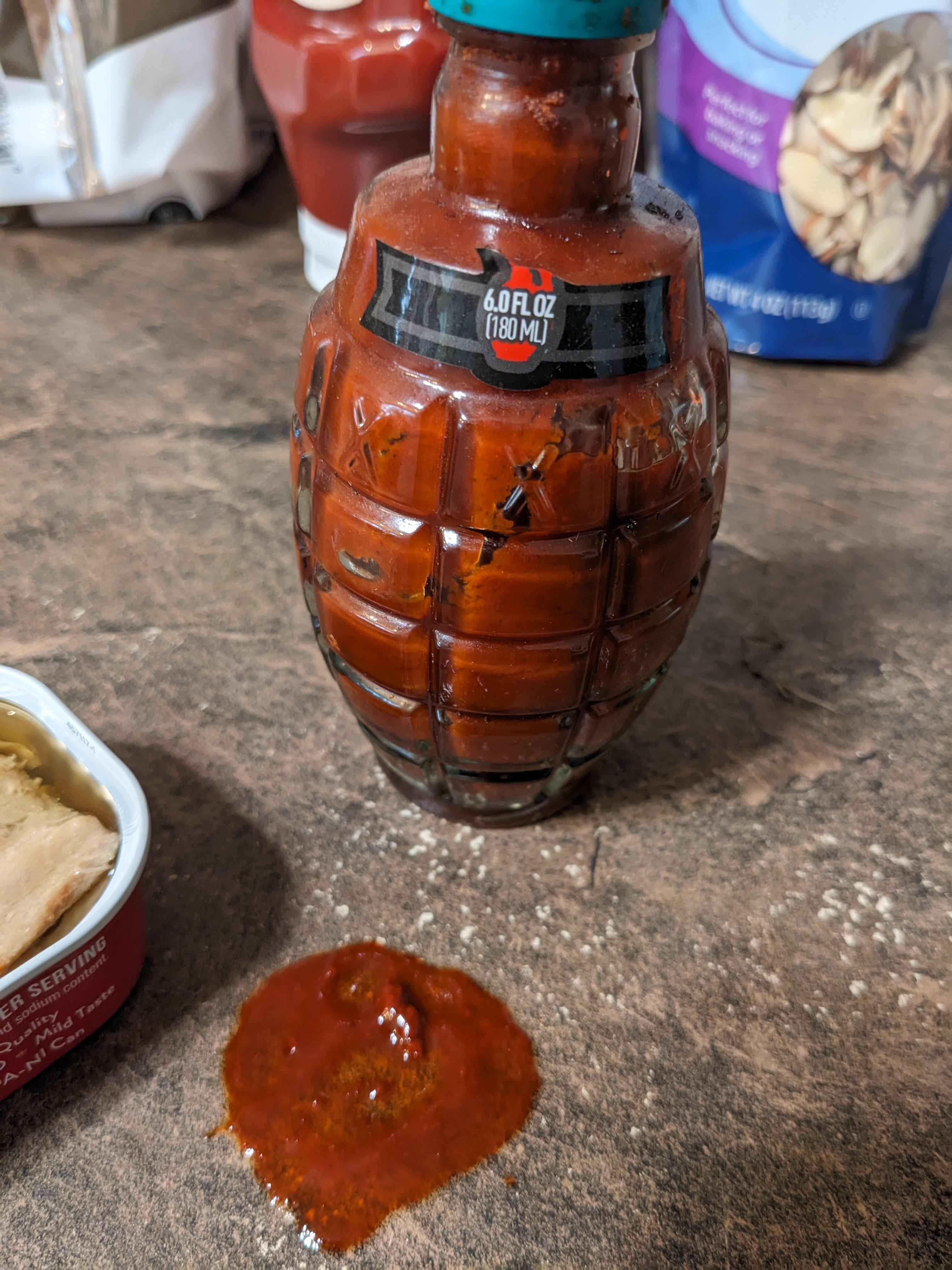 It really doesn’t matter, but I like the idea of making a Reddit thread instead of searching “hot sauce in grenade bottle” and immediately getting the answer.