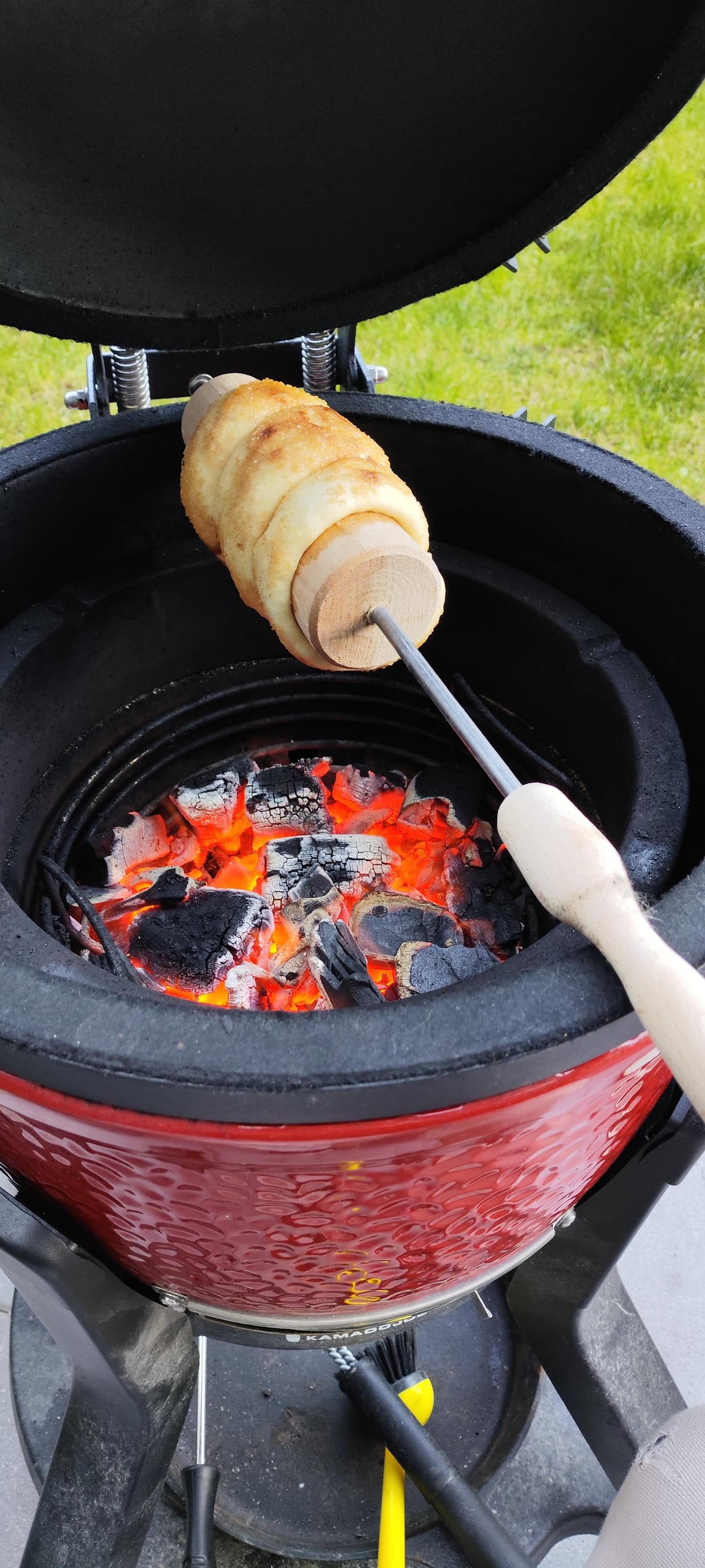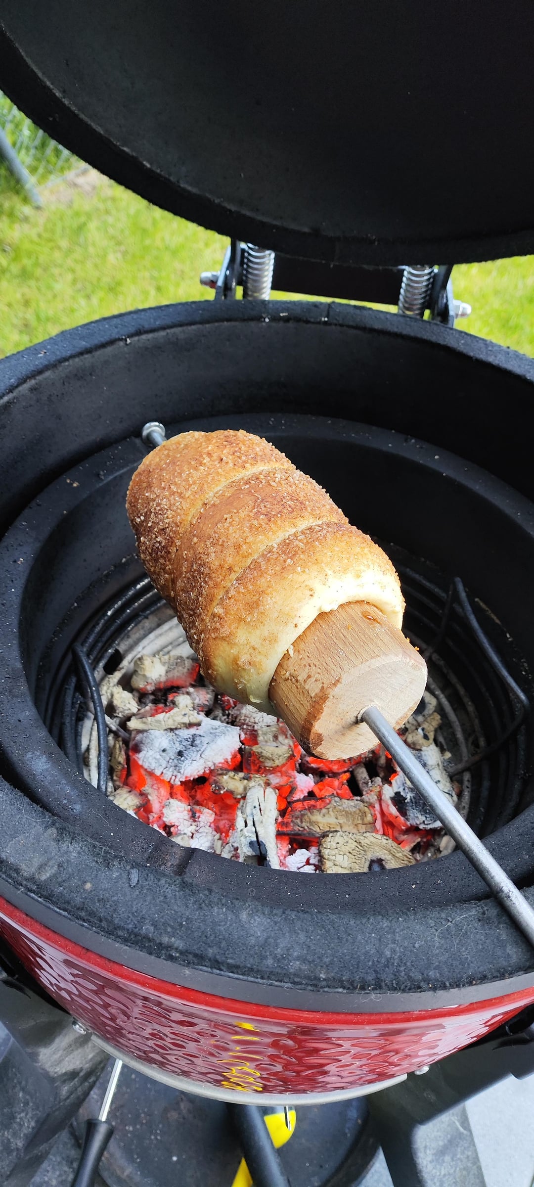 A wooden rolling pin or trdelník cylinder (ideally pre-seasoned with oil or ghee)