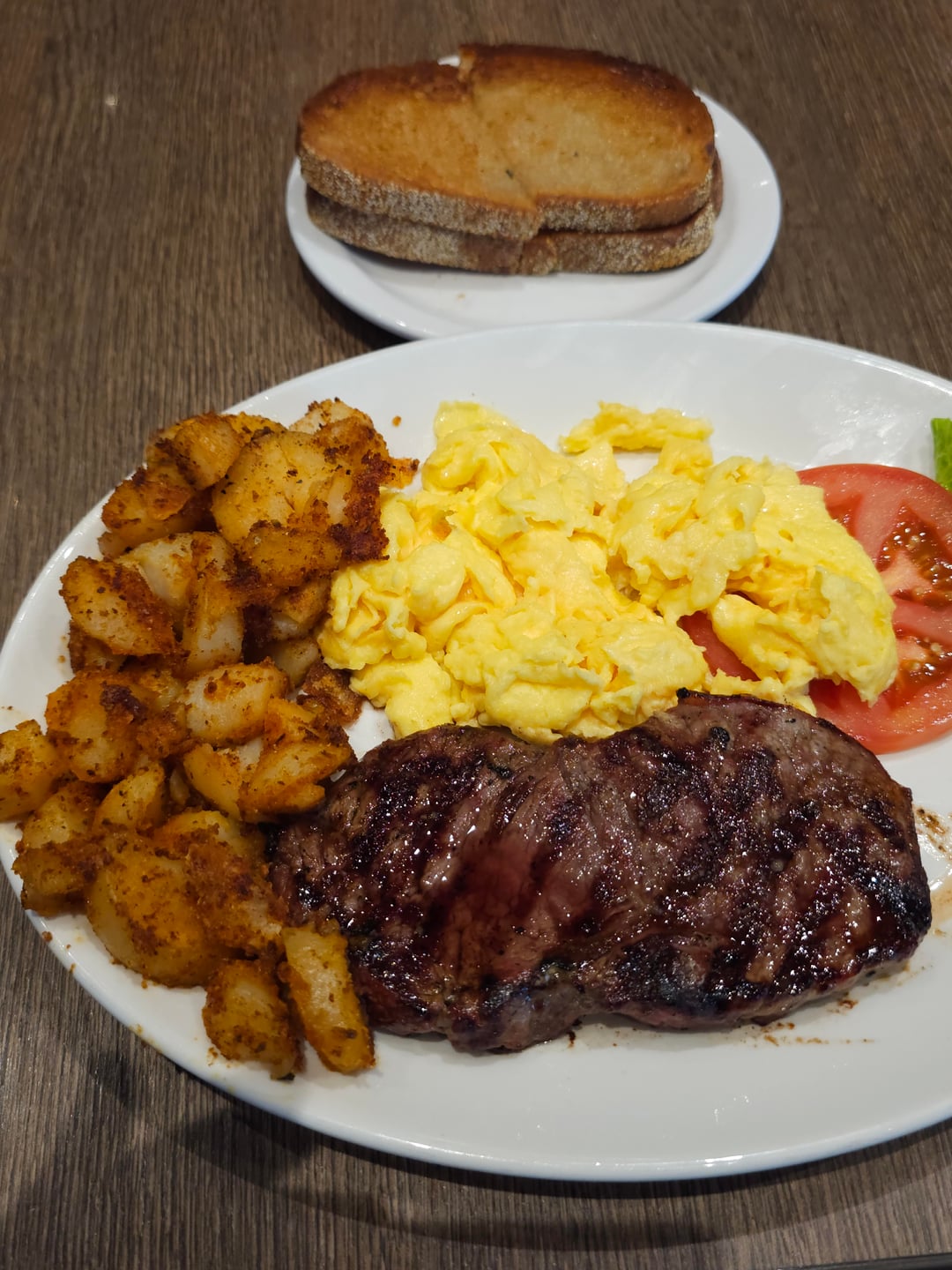 Angus beef steak, scrambled eggs, home fries, and toasted rye.by MidzeeQwad 6 Comments softstepsdaily 6 days ago Good appetite 😋 davis609 6 days ago Oh how’d like that right now WorkingSalamander745 6 days ago Good enough for breakfast, lunch or supper MagazineDelicious151 6 days ago Looks great Kuromis_reputation3 6 days ago That looks so good! DutchJVH 6 days ago Very nice