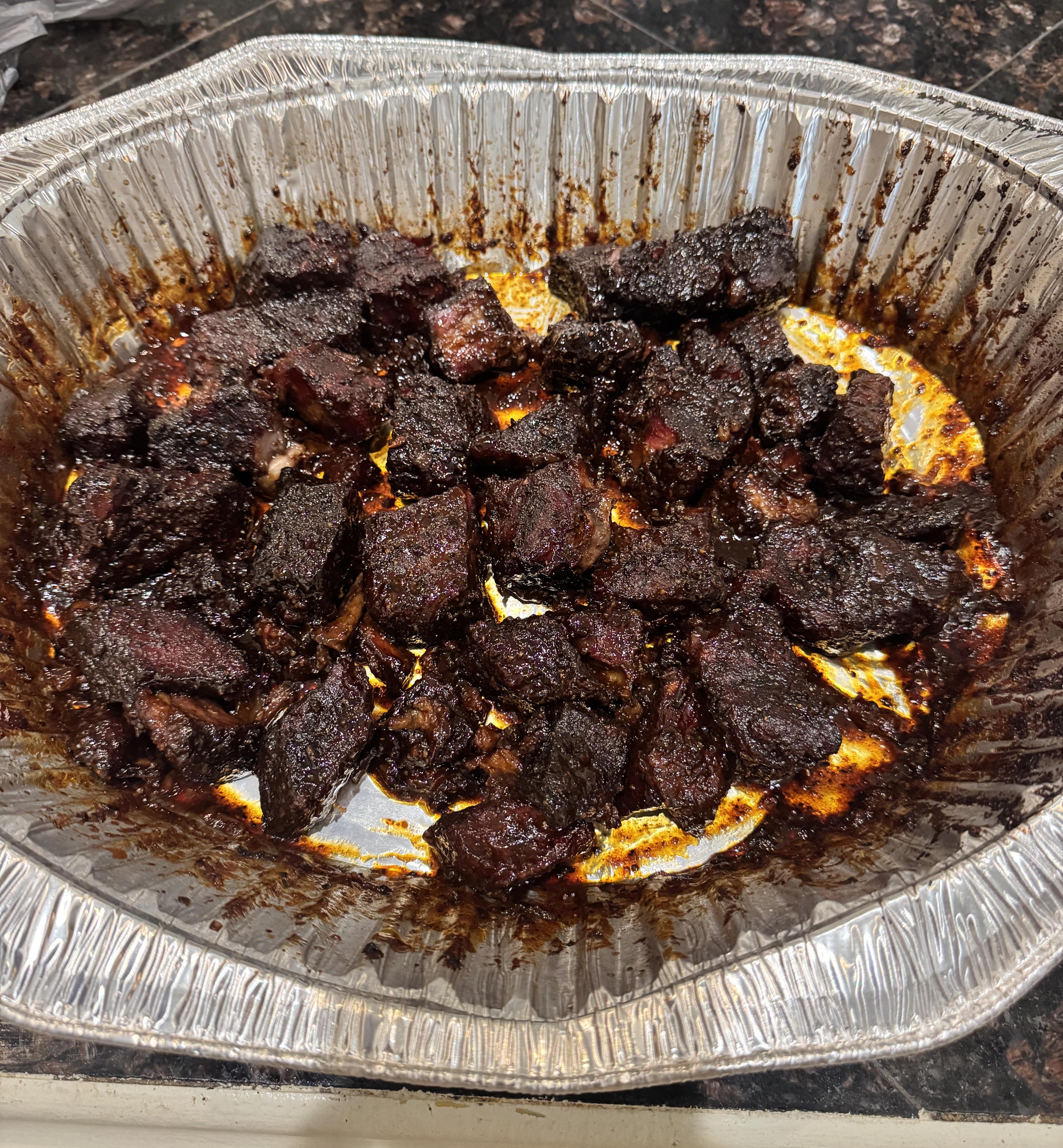 Cubed up about 6lbs of chuck roast ~2×2 each cube. Dry brined on a rack in the fridge for 12 hrs. Smoked it at 250 for 2.5hrs. After the smoke phase I braised in the aluminum pan covered. I used beef broth, W sauce, butter, beef tallow, cane syrup, and homemade bbq sauce for my braise. Braised until every chunk was butter, took about 1.5 hrs at 275. Then I reduced the braise in pan and added about 8oz of bbq sauce for the glaze. Poured and mixed the glaze with the burnt ends, drizzled some more cane syrup on top and let it tack up at 225 for about 45 minutes. I used oak and pecan wood. Each piece was so juicy and tender, probably the best thing I’ve smoked thus far. I can’t get enough of them lol. Enjoying a cold one and eating them now while I watch some football, cheers!