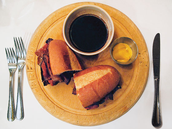 It’s almost December, time to make a reckless prediction for the New Year. Here’s ours: In 2012, everyone will be eating French dips. If you’ve tried the magnificent version of this storied sandwich that Riad Nasr and Lee Hanson have concocted for Minetta Tavern’s brand-new lunch service, we’re sure you’ll agree. This thing is a trendsetter. It’s roasted culotte steak, sliced to order; a perfectly textured butter-toasted, garlic-rubbed roll; and a heady cup of dipping jus. It’s the primordial joy of meat and pan drippings on deliciously sodden bread. Dare we say it’s in the same class as the French dips you get at Philippe’s and Cole’s in L.A.? We do (113 Macdougal St., at Minetta Ln.; 212-475-3850).