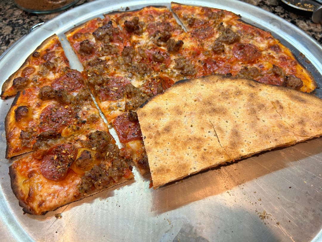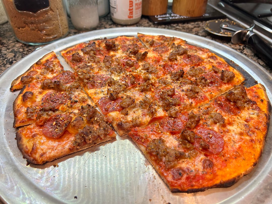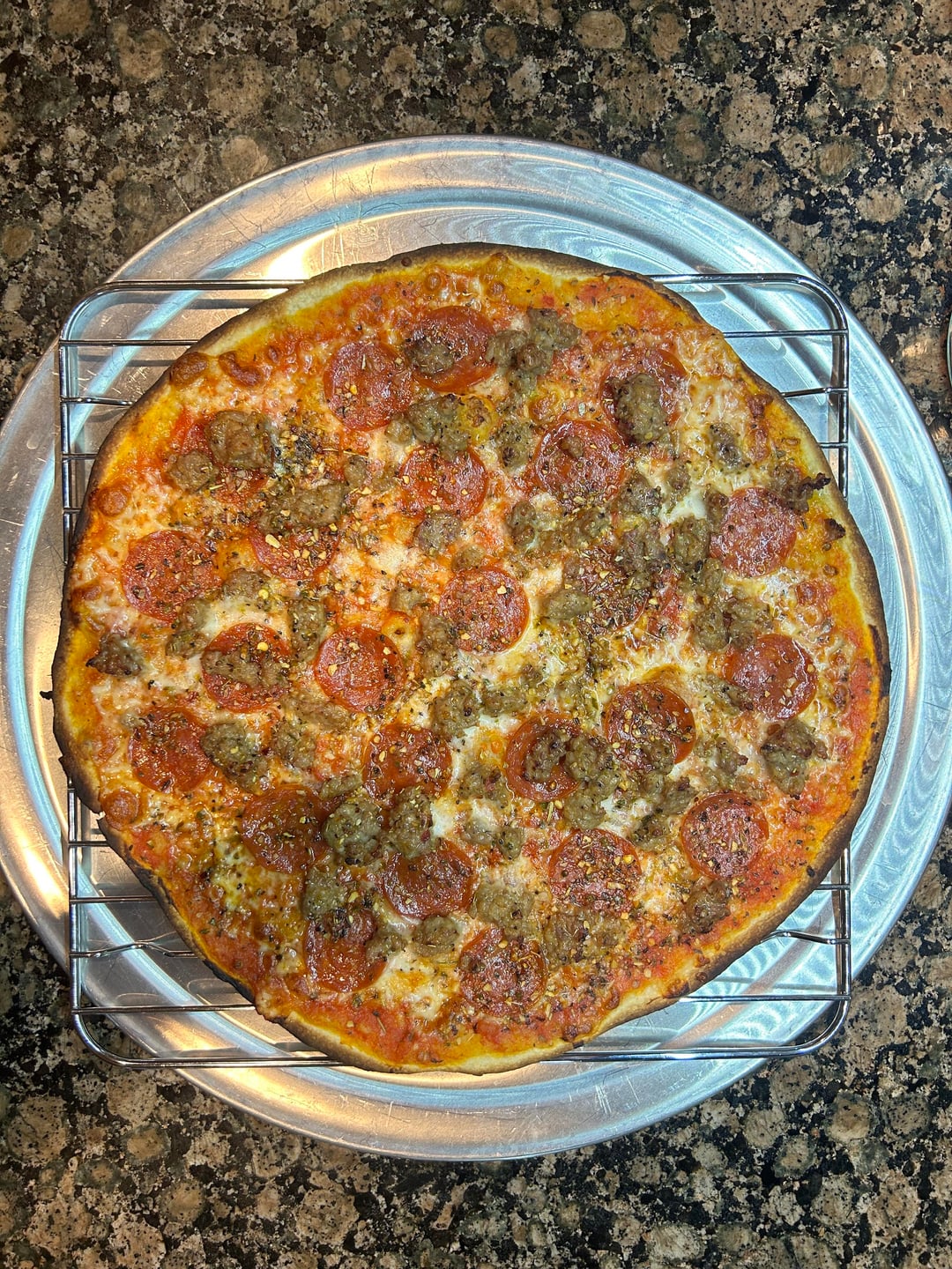 This looks incredible and I bet it tasted fantastic. I have been exclusively making tavern style since I got back into pizza making 6 months ago. I think it is easier because I stink at hand stretching. I may try one this weekend. But the wife is already asking when is the next pizza. So I make the dough on Monday, cold ferment and roll out Thursday for a Friday back. But you reminded me, I need to start docking my crust.