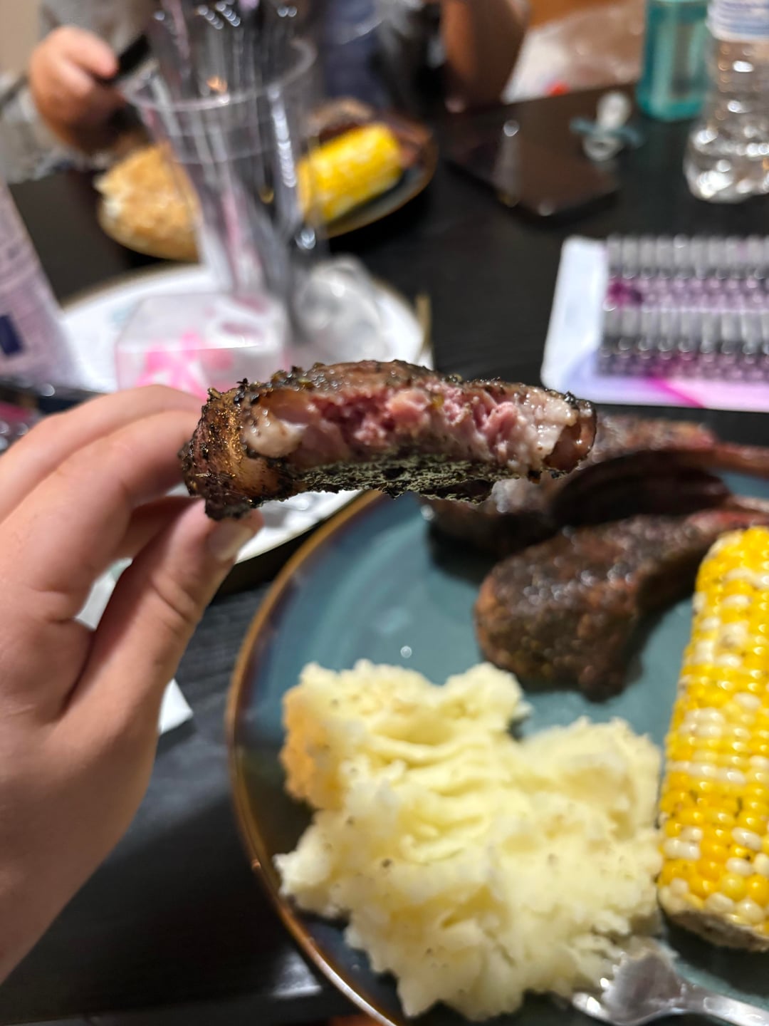 Never had lamb so when I found a rack at Sam’s I decided to grill them up (grilled the corn too)