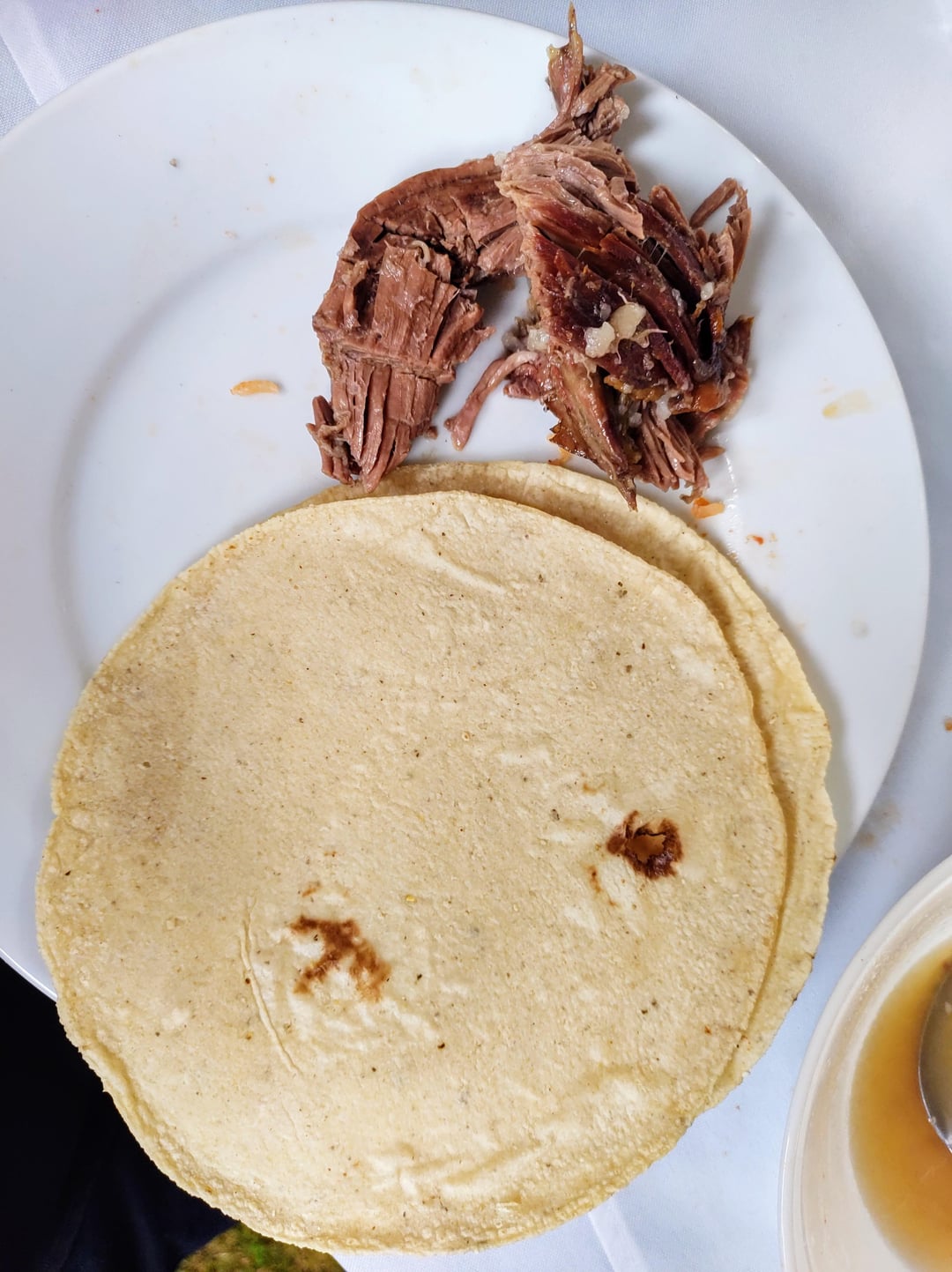 I've never been a fan of barbacoa, but what the government of Tonanitla, México State served yesterday was really not bad. A nice gordita de frijol; a consomé that was flavorful, not greasy on the lips, with garbanzos, diced onion, and chile; barbacoa that was not greasy and even had a bit of smokey flavor , and a very tasty red sauce. I didn't go near the green. Also the panza was not bad.