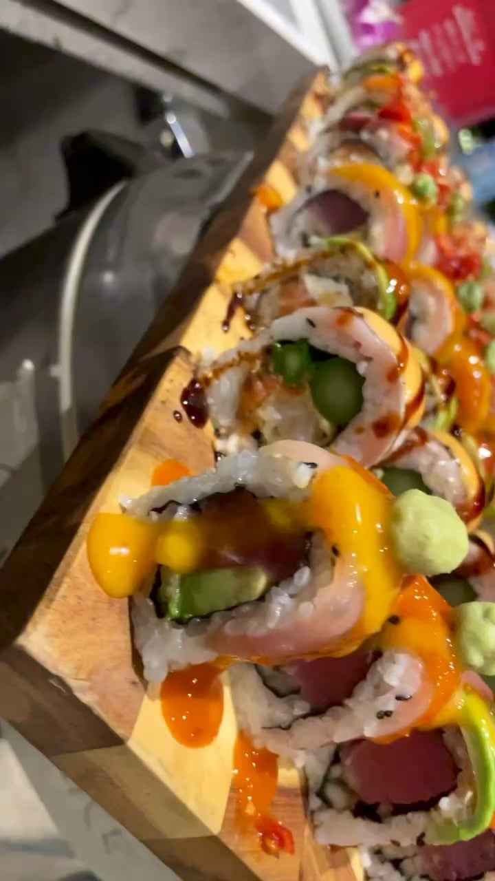 I think it looks messy with sauce, too many toppings and too much going on. I think the natural flavor of fish on rice is just lost. Id likely just feel textures covered in dipping sauce.
