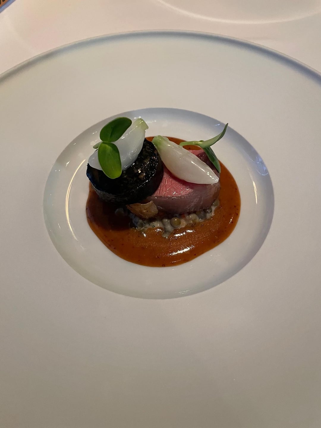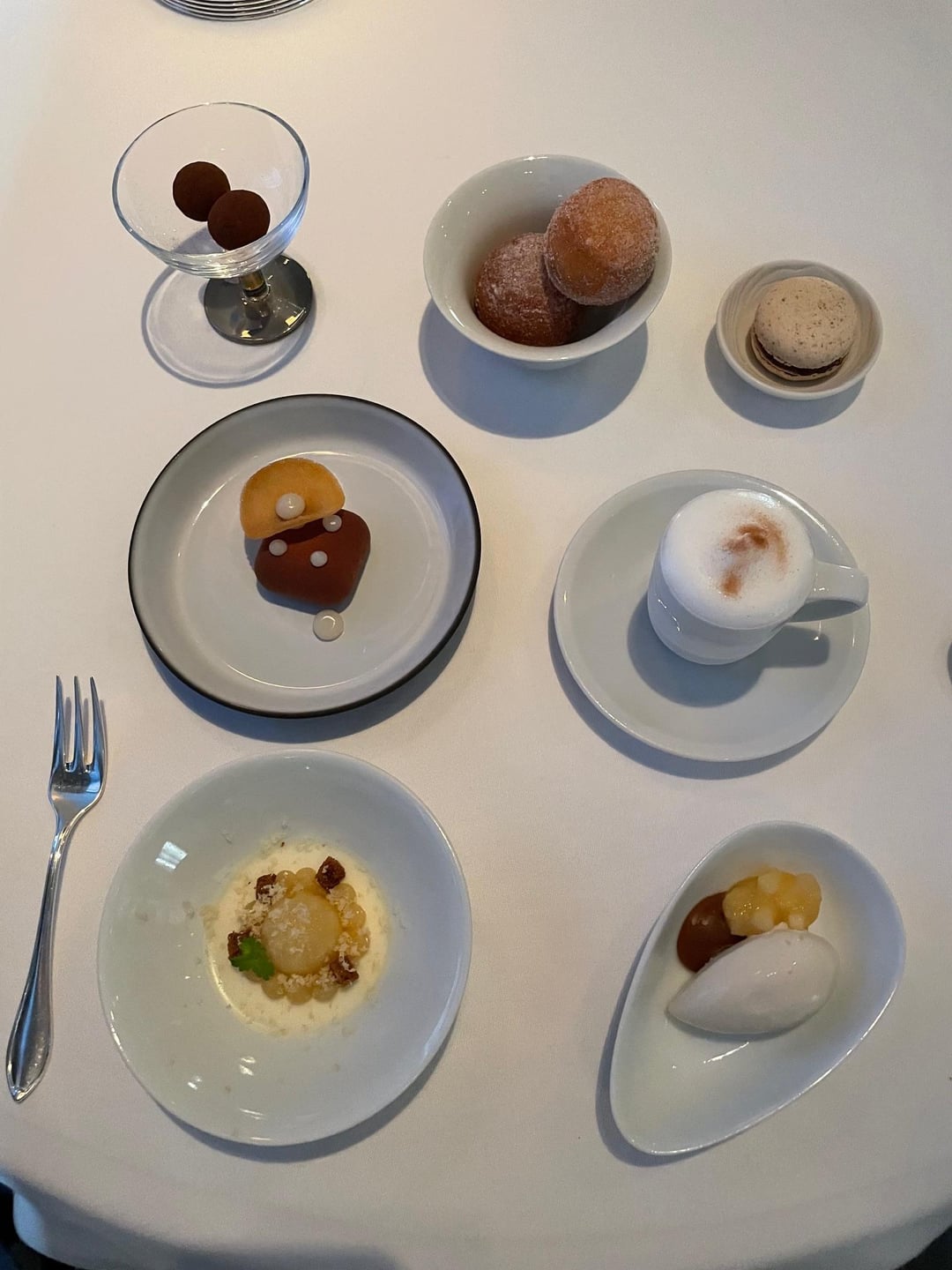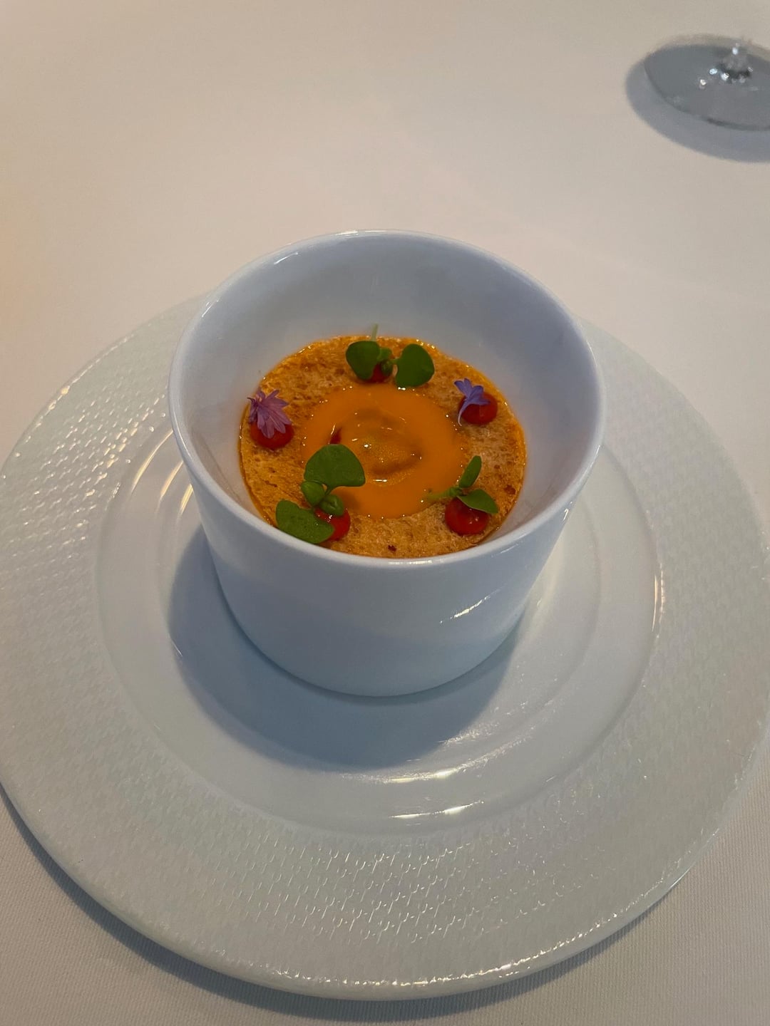 To set the scene, when I've dined at TFL solo, I don't bother looking at the menu. There's a short exchange with the captain confirming that I don't have any food allergies and then the kitchen works its magic. Throughout the 10+ courses, there wasn't a bite I didn't swoon over: velvety tomato soup that concealed a lightly smoked orb of burrata at the bottom of the bowl; Angel hair pasta coated in an umami bomb of parmesan and engulfed by white truffles; smoked quail paired with preternaturally sweet butternut squash, cranberry and Brussels sprouts; an impossibly tender piece of lamb topped with a savory puck of boudin noir.