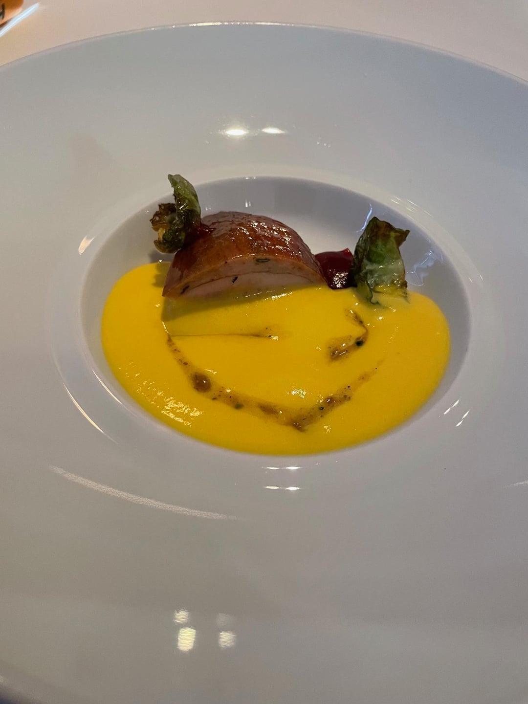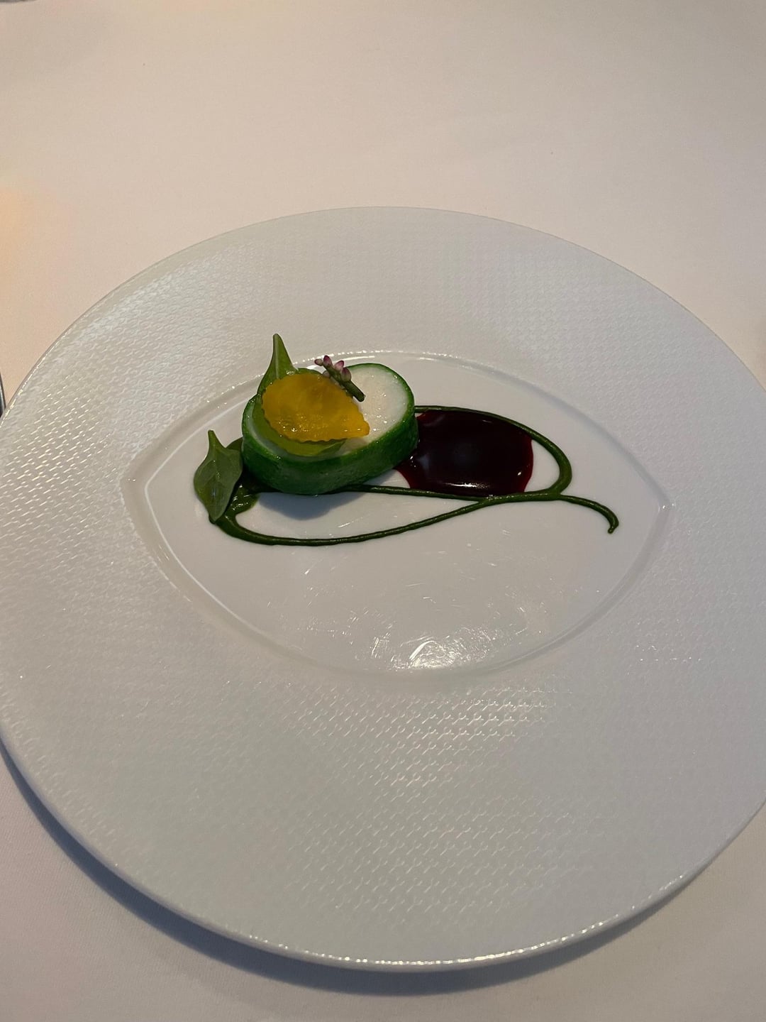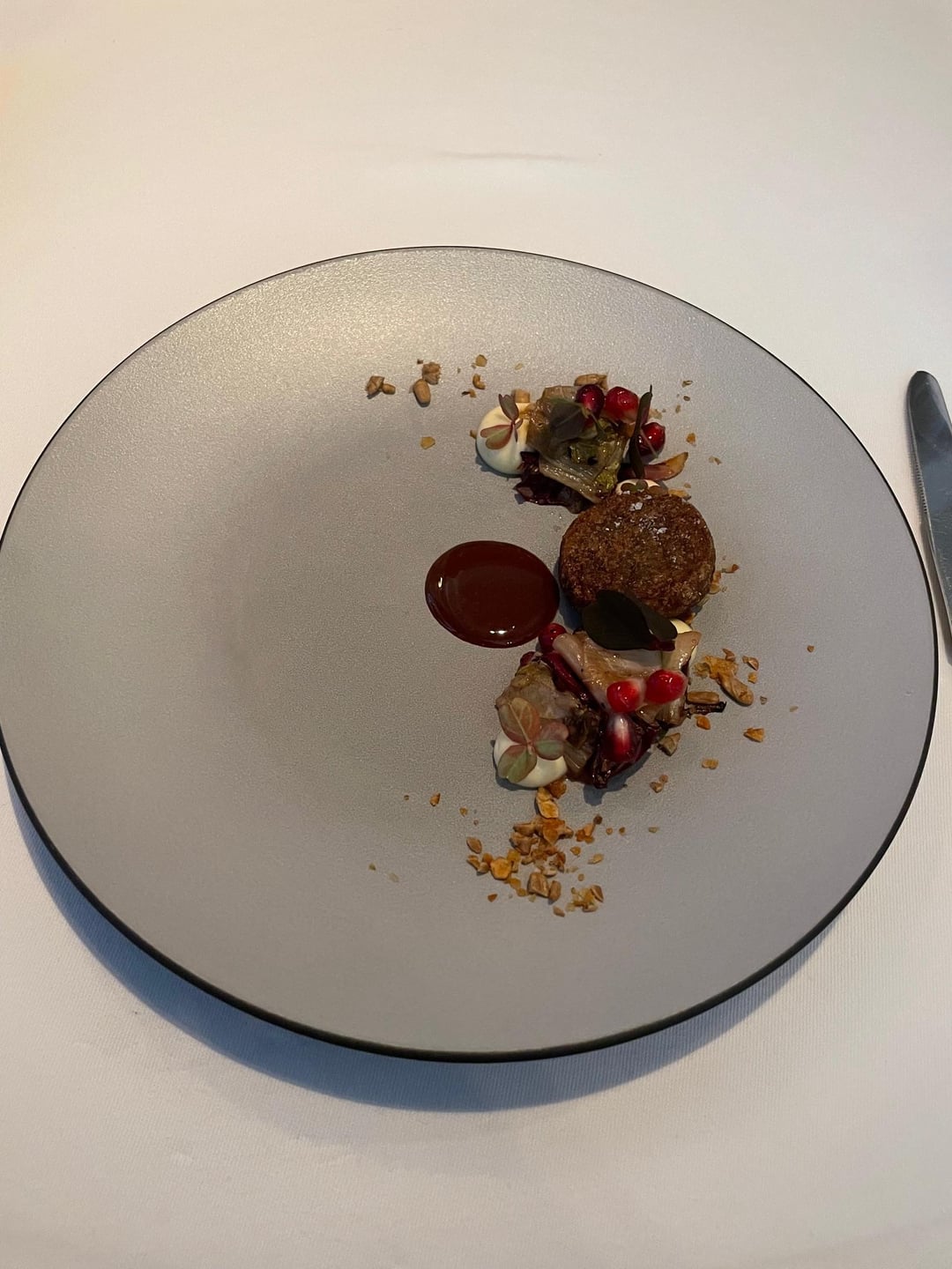 To set the scene, when I've dined at TFL solo, I don't bother looking at the menu. There's a short exchange with the captain confirming that I don't have any food allergies and then the kitchen works its magic. Throughout the 10+ courses, there wasn't a bite I didn't swoon over: velvety tomato soup that concealed a lightly smoked orb of burrata at the bottom of the bowl; Angel hair pasta coated in an umami bomb of parmesan and engulfed by white truffles; smoked quail paired with preternaturally sweet butternut squash, cranberry and Brussels sprouts; an impossibly tender piece of lamb topped with a savory puck of boudin noir.