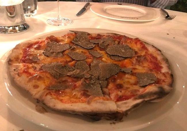 Prices : Melanzane: 21€; Vitello tonnato: 26€; Pizza Tartufo Nero: 45€.