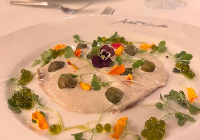 Vitello with veal: Chromaticism and attractiveness are the first things you notice about this ‘vitello’ of white veal and tuna. A Piedmontese speciality that is still a magnificent starter, even more so than the hors d’oeuvres. The cut of the meat is very fine.