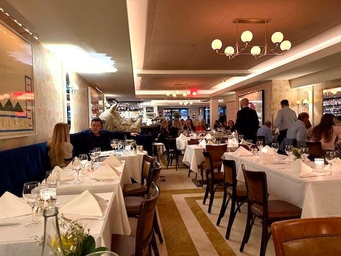 And that seems to define a place that is more comforting than it is disdainful to anyone. I am certainly no regular but on a recent Monday night I was very cordially greeted by a manager happy to give me and my guest, whom I was interviewing, a quieter table in the rear corner. Otherwise, it’s not as loud as a lot of other restaurants this size.