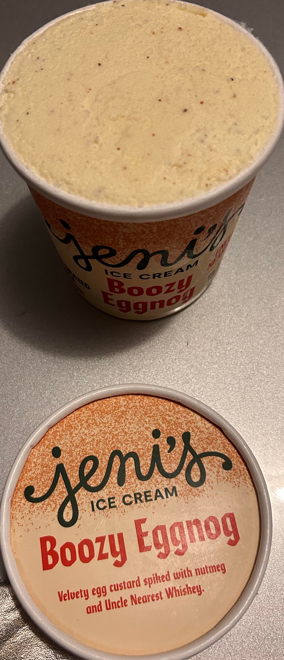 I used to work at a Jeni’s scoop shop. “Off the record” we all thought the boozy eggnog tasted like hot dog water, like actual essence of wiener water. We still ate it though. It’s really good with milkiest chocolate or dark chocolate peppermint