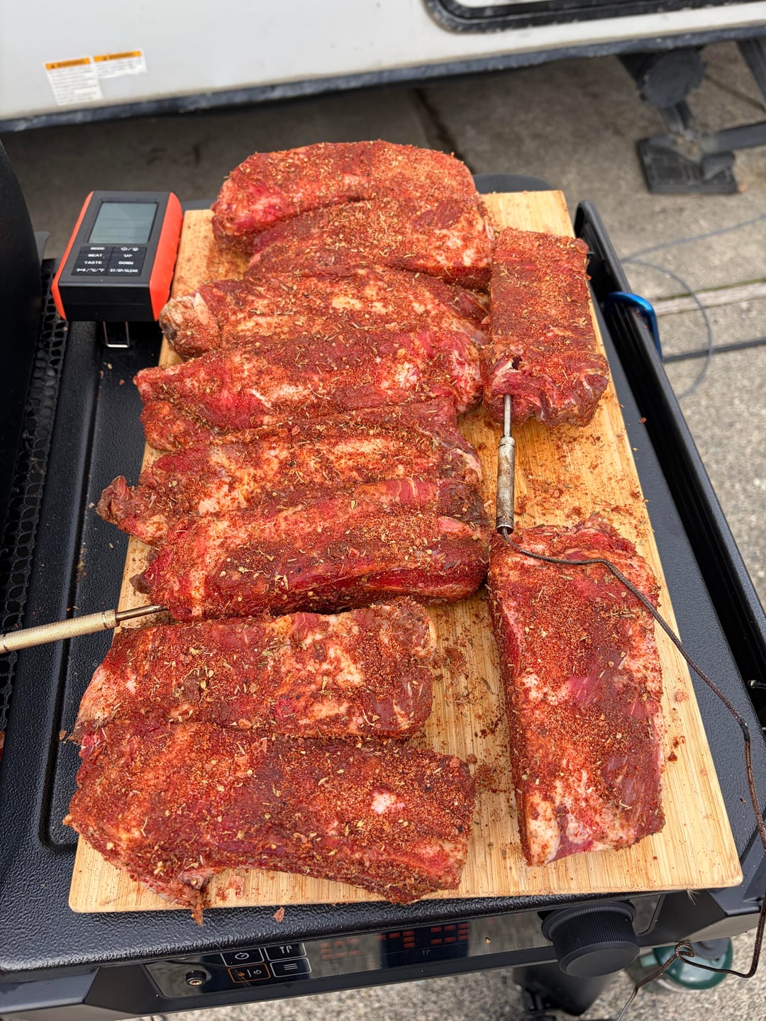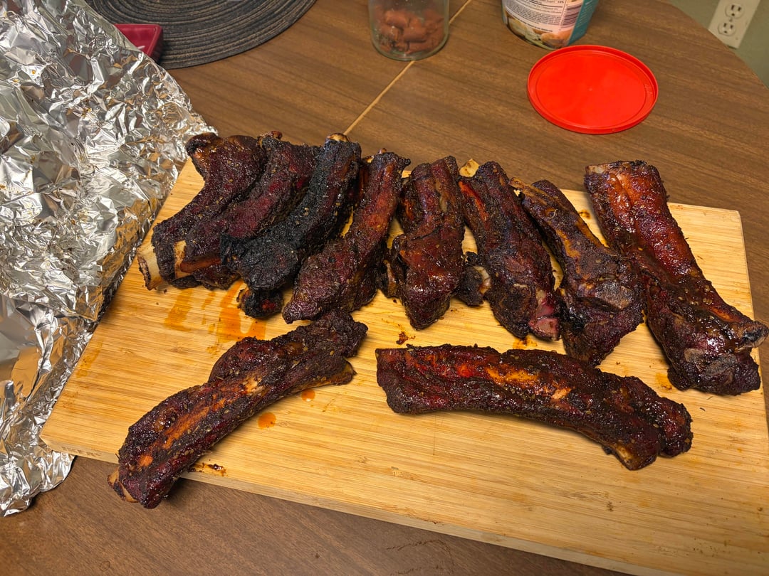 Cayenne-heavy dry rub with a teriyaki glaze finish beef ribs for the win! Used my smoke tube for extra flavor.