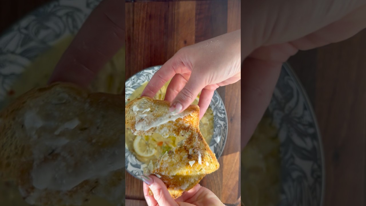 of Golino Greek lemon chicken soup. So good. I was feeling sick today, so I had to make it. And you know, I’m going to make it quick. So, this is already pre-made chicken that I just shredded. And then I started chopping my veggies. A little tip for the carrots. If you have to cut them, I always use a potato peeler to take off the top layer first, and then I still wash it, but then I chop it. Also, if you ever make that carrot salad, that’s the best way to do it. Get your pan hot with oil. Start chopping up some garlic as well. And make sure you mince that well. Then what you’re going to do is get ready to dice your onion. That is a yellow onion, a full yellow onion that you’re going to dice up. Throw in the pot and then let that sit for a bit. And then you want to add your garlic after. It’s going to get a little bit of a charred to it for a couple minutes. Then add your chicken broth. I added like a quart and a half. And I went to my herb garden to get Greek oregano, dill, and a little bit of rosemary. It was so good. Washed that of course before. Chopped it up. Put it in the soup. Get your salt. And of course, you need cracked pepper in there. I added a little bit of turmeric cuz again, I was feeling sick, so I added that just to help with inflammation. Red pepper flakes because I love a little bit of a kick. Add bay leaves. But honestly, add the bay leaves after all of this cuz it was harder to dig out rather than adding them off the top. So add chicken then or the pasta then the bay leaves. Learn from my mistakes. Part of this soup is whisking eggs and putting it into the broth. So make sure you whisk your eggs. I added flour to thicken it up a bit. Whisk that pretty well. And then you’re going to end up adding some lemon. For me, a little trick, when I squeeze lemon to get all the juice out, I cut the ends off and then I slice in the middle. And then I slice a little dash in the middle again and pour in some stock to the eggs and then into your broth. Enjoy.