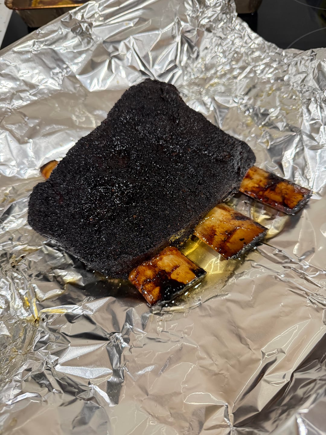 Tried cooking beef ribs for the first time today, got these from Costco and had them on the Weber for around 7 and a half hours. The meat is super tender and a really crispy bark (possibly a bit too crispy to be honest). Still learning but very happy for a first attempt.
