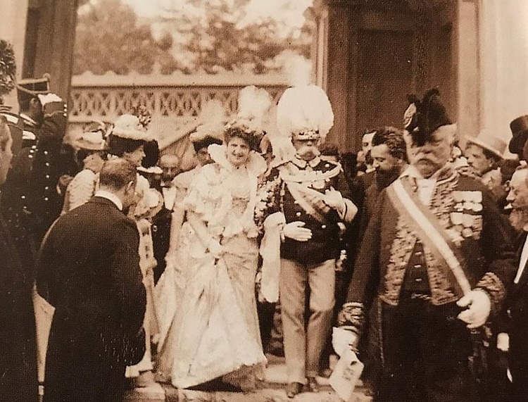 King Umberto I of Italy and Queen Margherita at the inauguration ceremony of the Triennale di belle Arti of Milan, 1894.