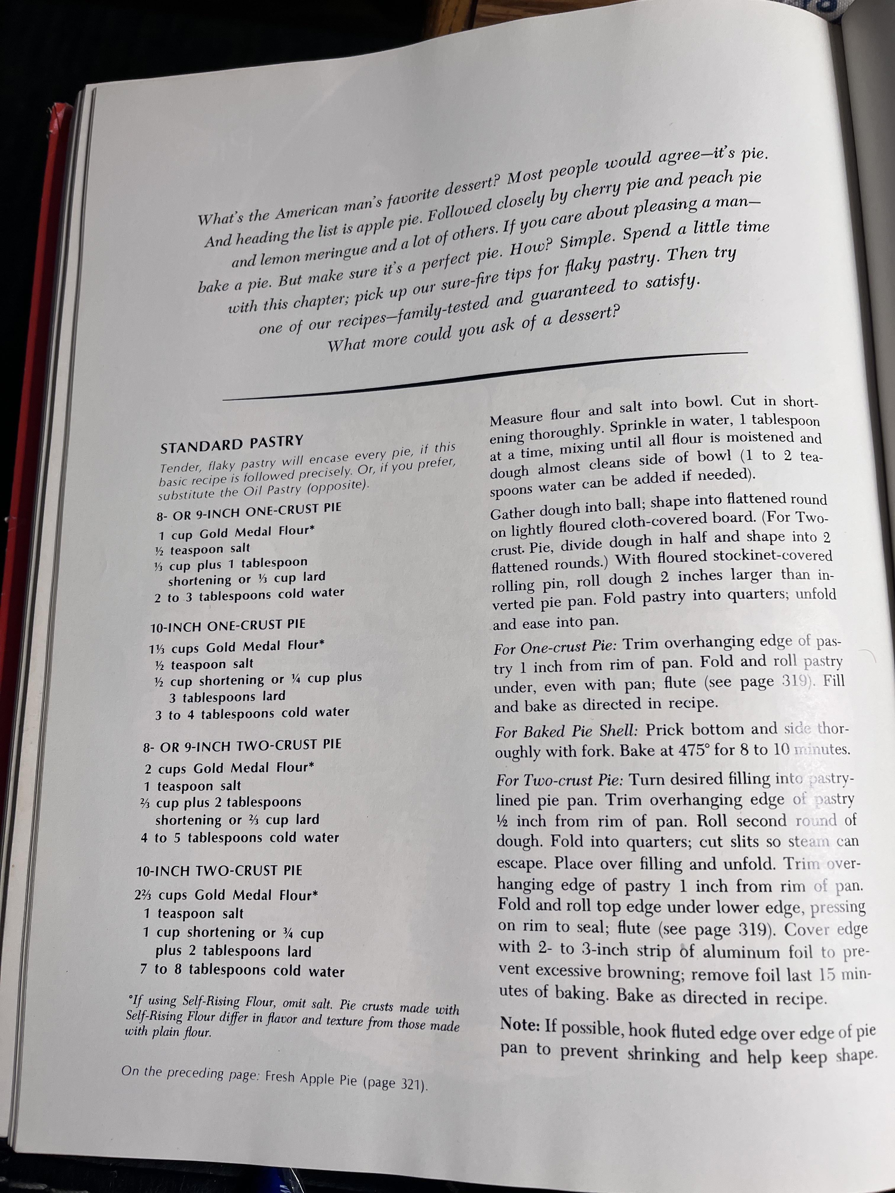 Per request, this is a picture of the recipe from a 1970 Betty Crocker cookbook for pie crust