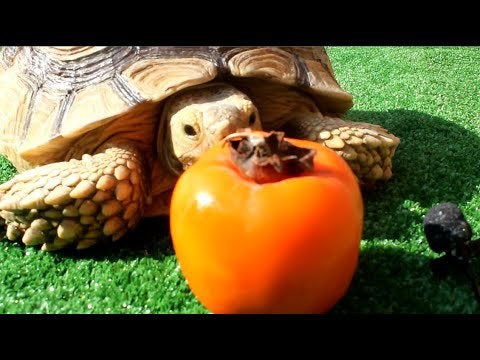 Tortoise eating persimmon (kaki) – Japanese Fruit ASMR