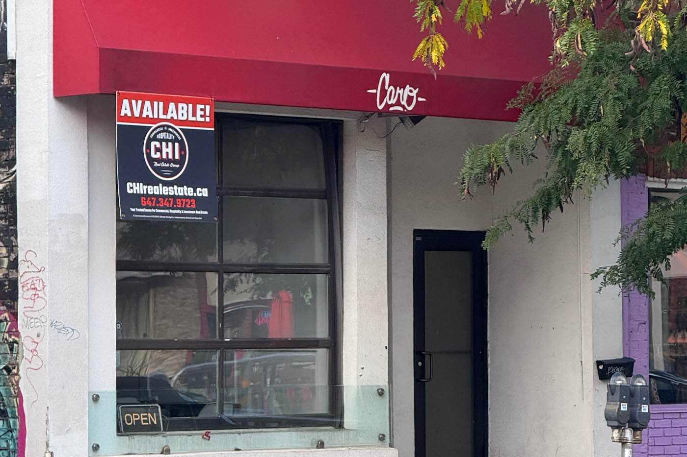 Earlier this year, the original Ottawa Street location of Caro closed, leaving only Caro on James. Now, it seems that second location has also permanently closed, with the James North restaurant space shuttered and a real estate sign hanging from the front window.