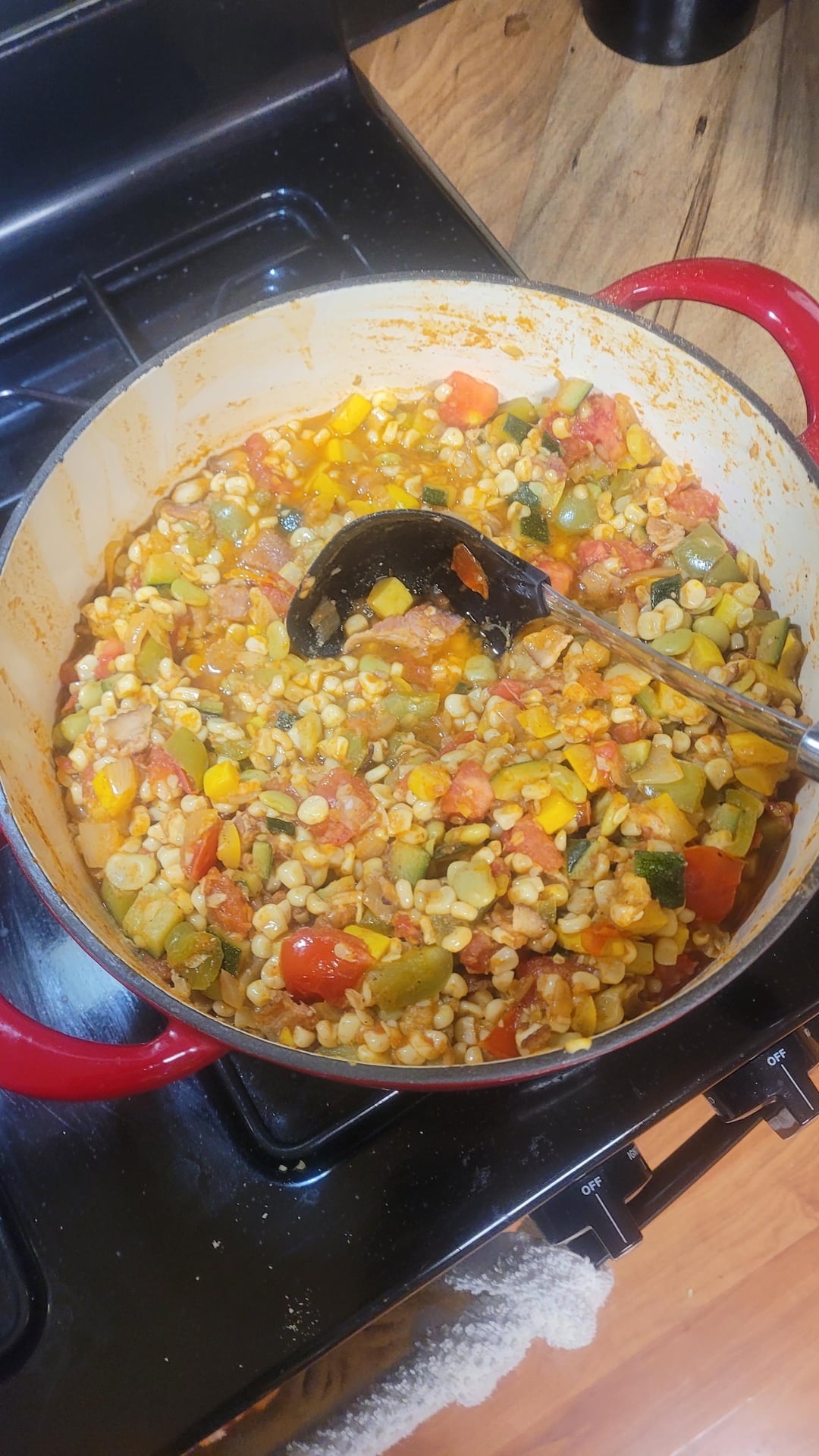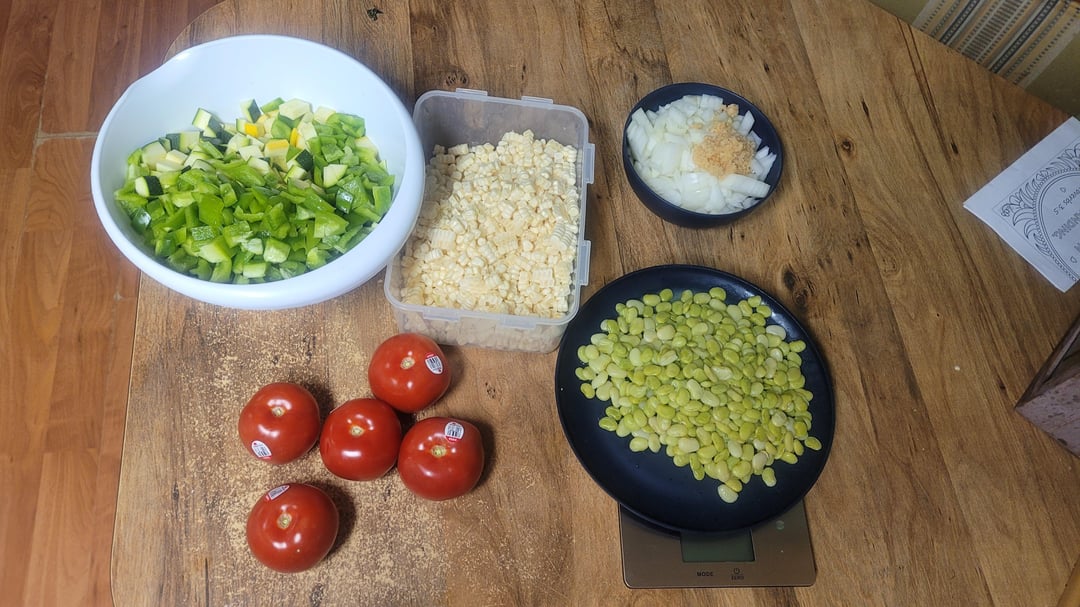 Saute it all together and add onion powder, garlic powder, paprika, salt, and pepper to taste. I like to wait until it's all done and kill the heat before I add the tomatoes. A 500 gram serving is about 385 calories.by PapaJuja Dining and Cooking