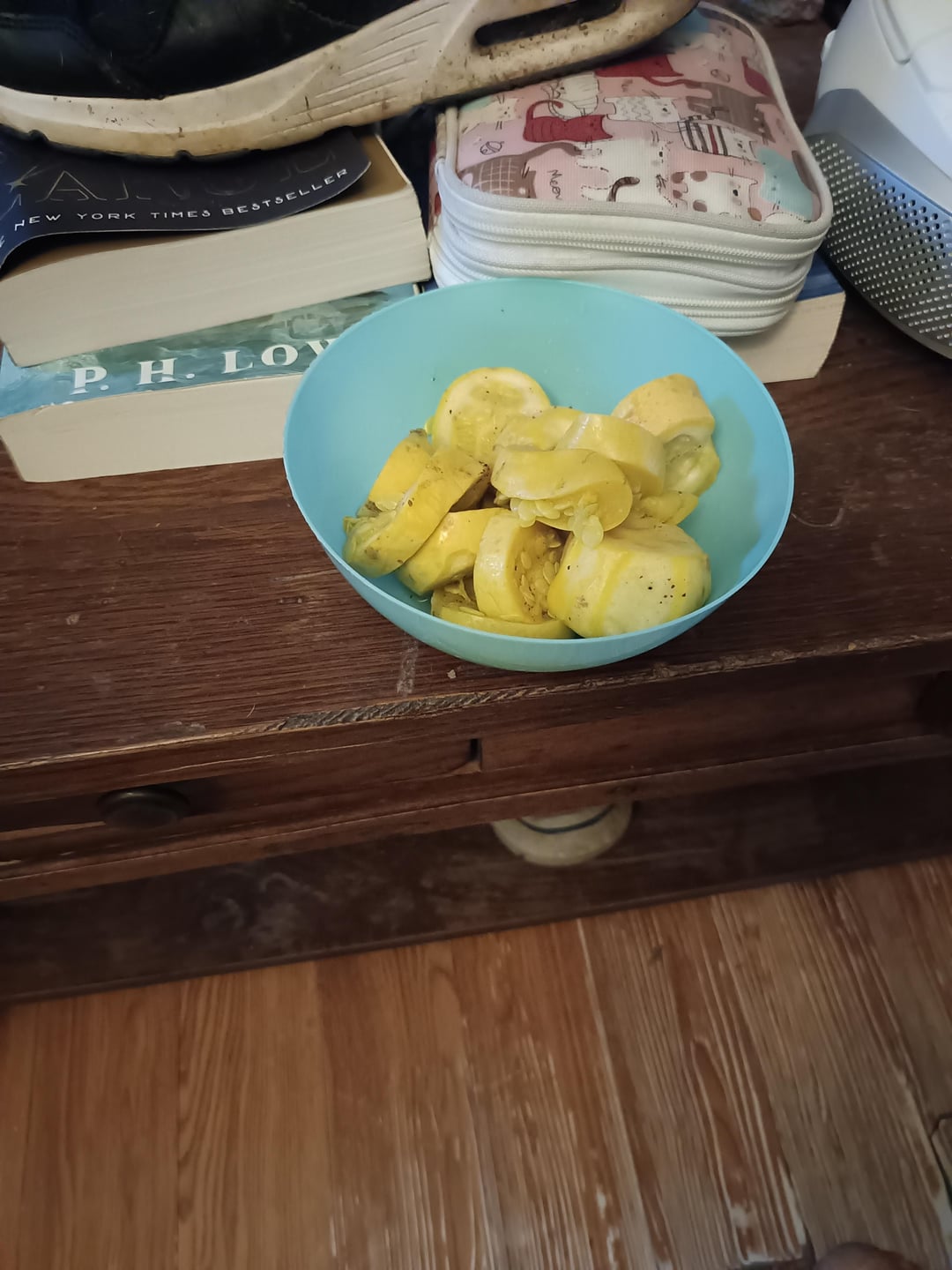 A bowl of steamed squash seasoned with salt and pepper