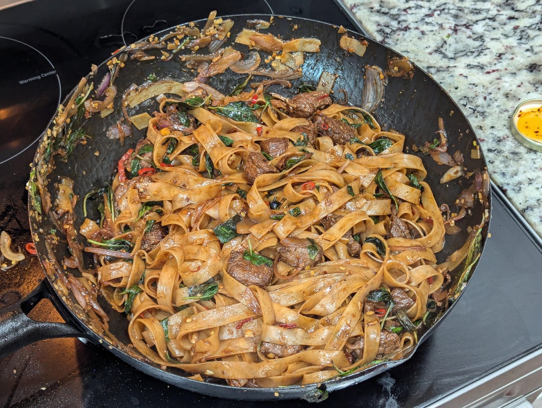 If you cook less noodles in the wok at one time, it becomes much easier to get the correct texture and cook on all of them; too much noodles in a wok at once will make them sticky and starchy and cook poorly. And they won’t char like they’re meant to