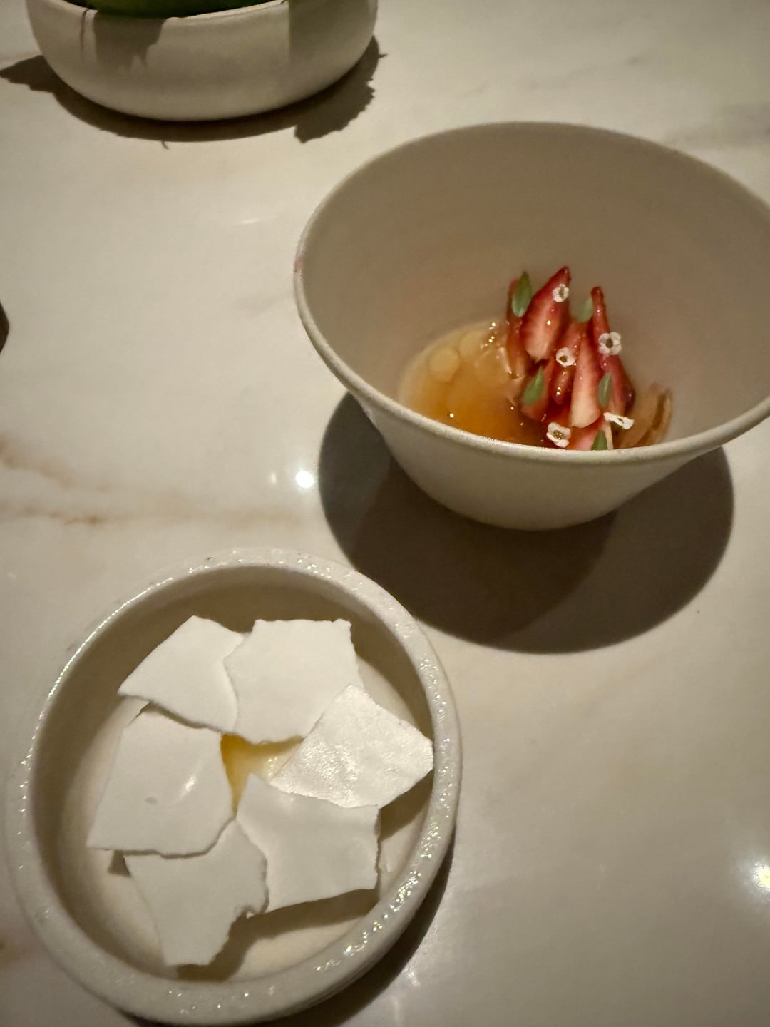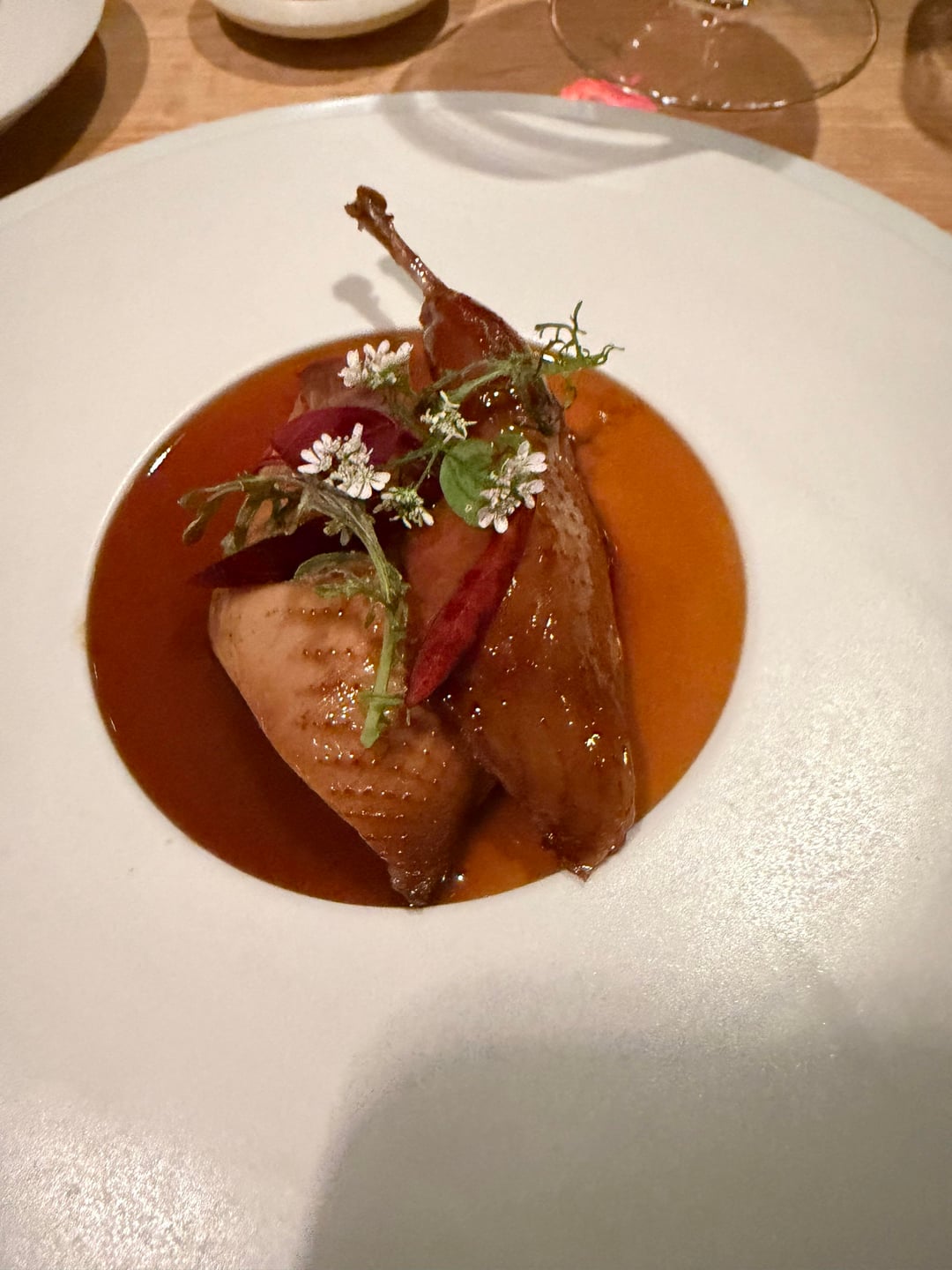 First three are from Ssal, whose cuisine I would describe as “Koreanish”. (1: Bluefin tuna and caviar 2: Quail 3: Strawberries). I thought the food was all good. One or two of the bites, like this tuna and the eel were sublime. The dessert was boring and the wine pairings didn’t do anything for me. Service was friendly, though I remember sitting with a bunch of mostly empty glasses at one point.