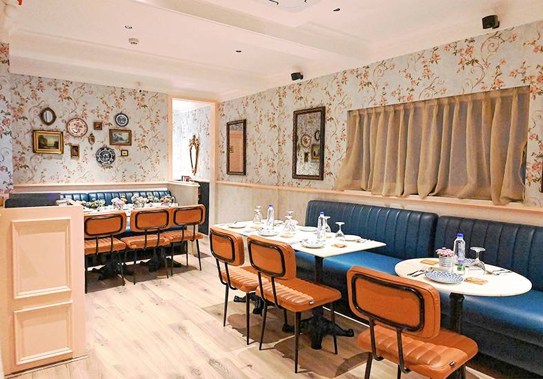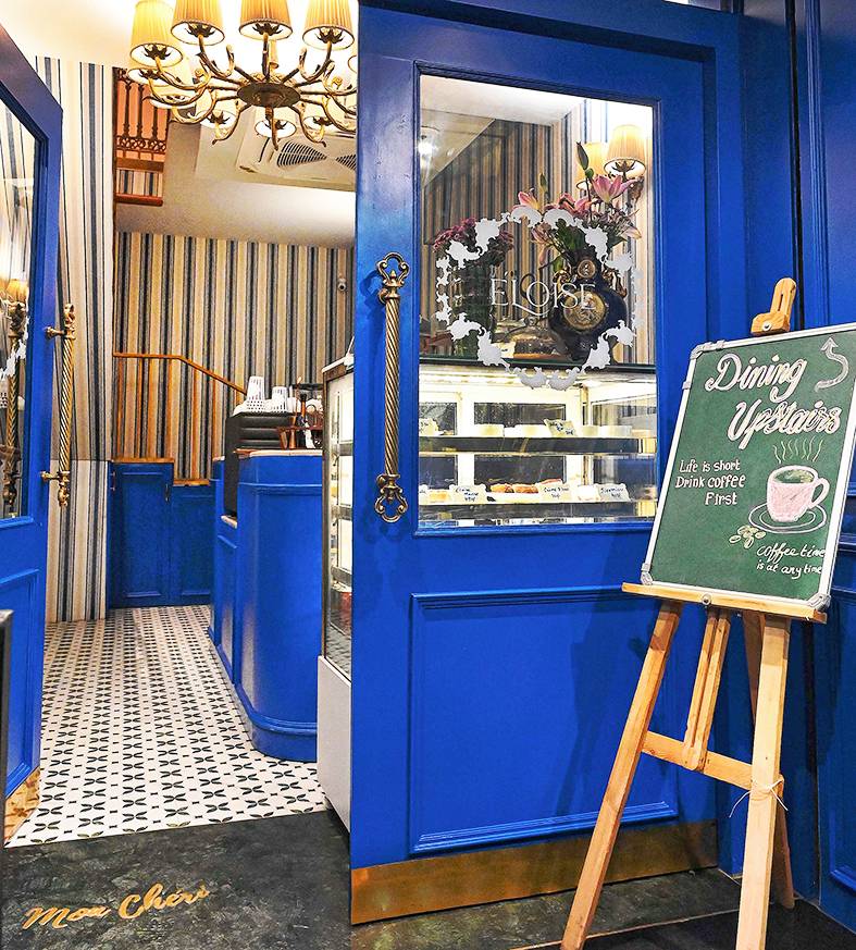 Step through the royal blue doors of Eloise, and voila, you’re in Paris. Wander upstairs to the mezzanine, and the vibe shifts to cosy English charm.