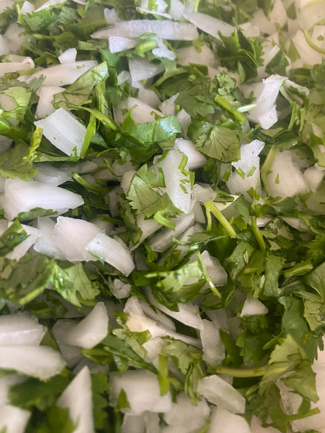 I would definitely want more onion. I’ve never cut my cilantro and onion together. Mostly because I love onion and usually pile on more than what my partner does.