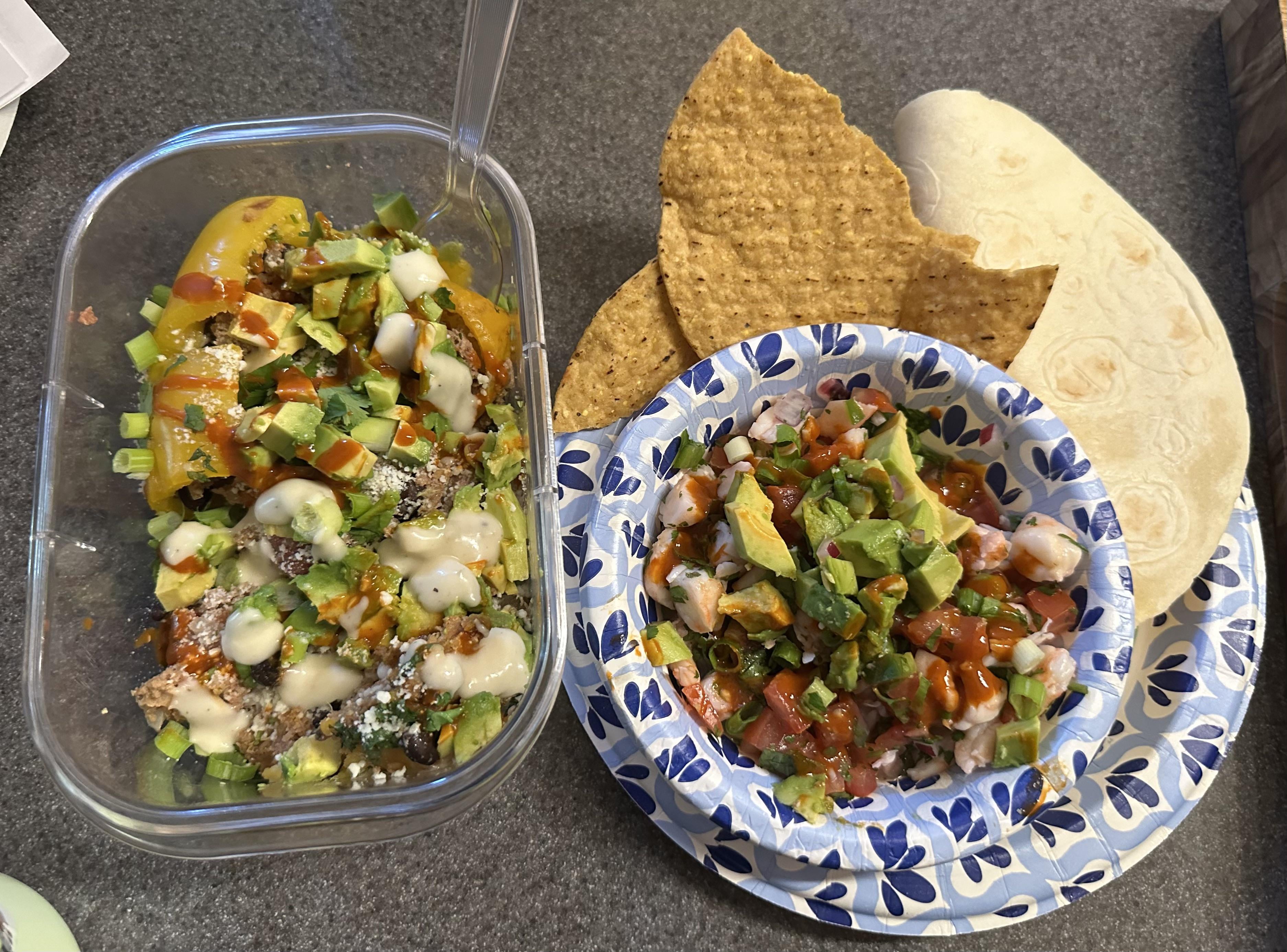 Stuffed pepper on the left, shrimp ceviche on the right. Same toppings, both fire 🔥 by merp9 Dining and Cooking