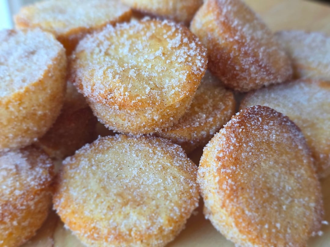 And then after they were cooked, while still hot, I put them into a container with a lid and gently tumbled them around in a cinnamon sugar mix.