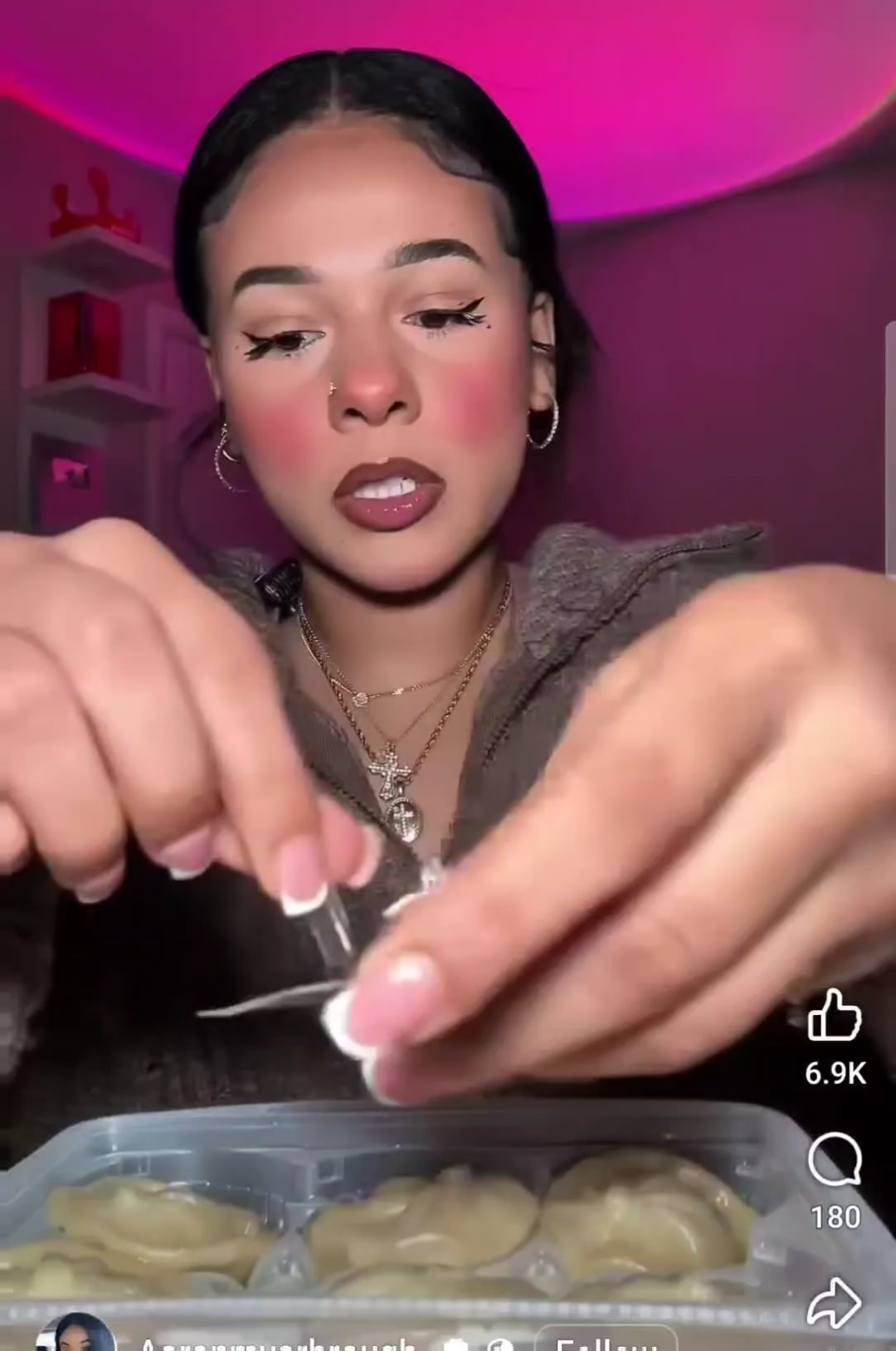She preps dumplings the same way she preps her face