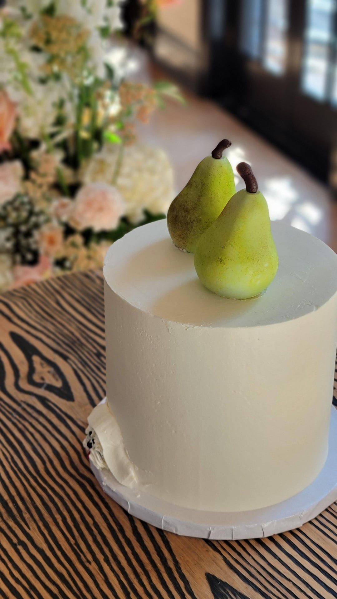 You absolutely nailed it! From the pears to the lovely design, this cake looks perfect for a wedding. How long did it take to make all those details come together?