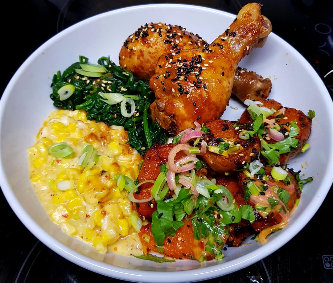 Shlomer_Simpstein 2 weeks ago I make gochujang chicken all the time, one of our go to meals. Can you share recipes for the sweet potatoes and spinach? Whole plate looks amazing!