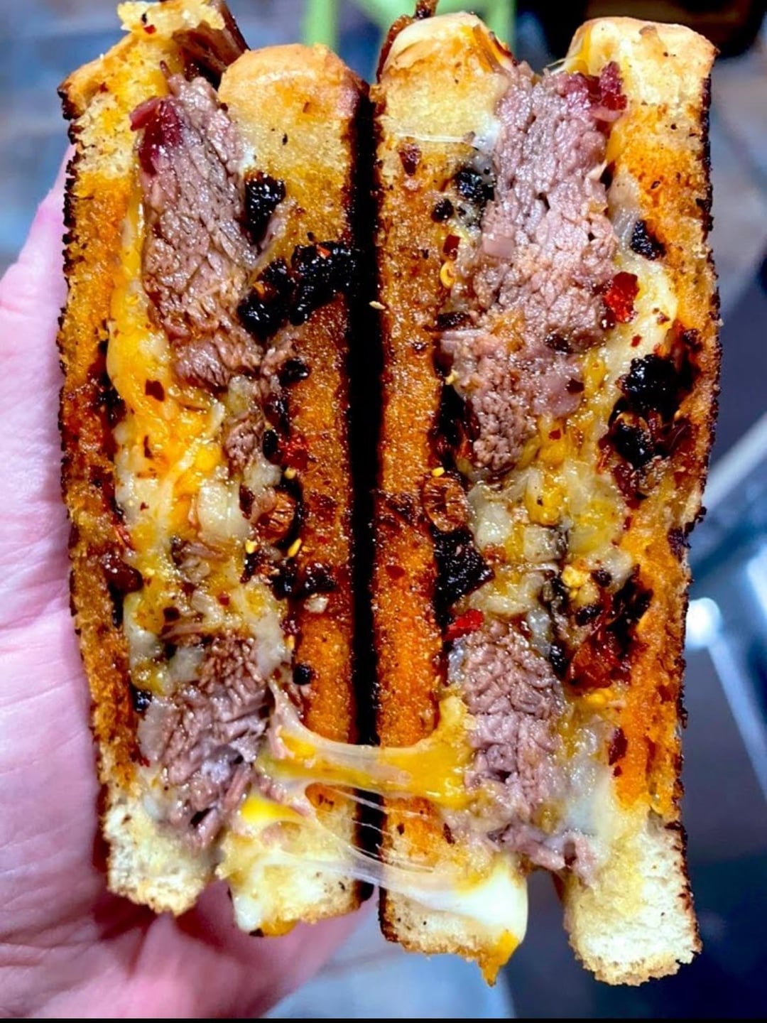 Had some leftover brisket and decided to hook the neighbors up. Heavily buttered sourdough bread, cherry and oak smoked Trisket, cheddar cheddar. Might be my favorite comfort food to make on a cool fall evening.