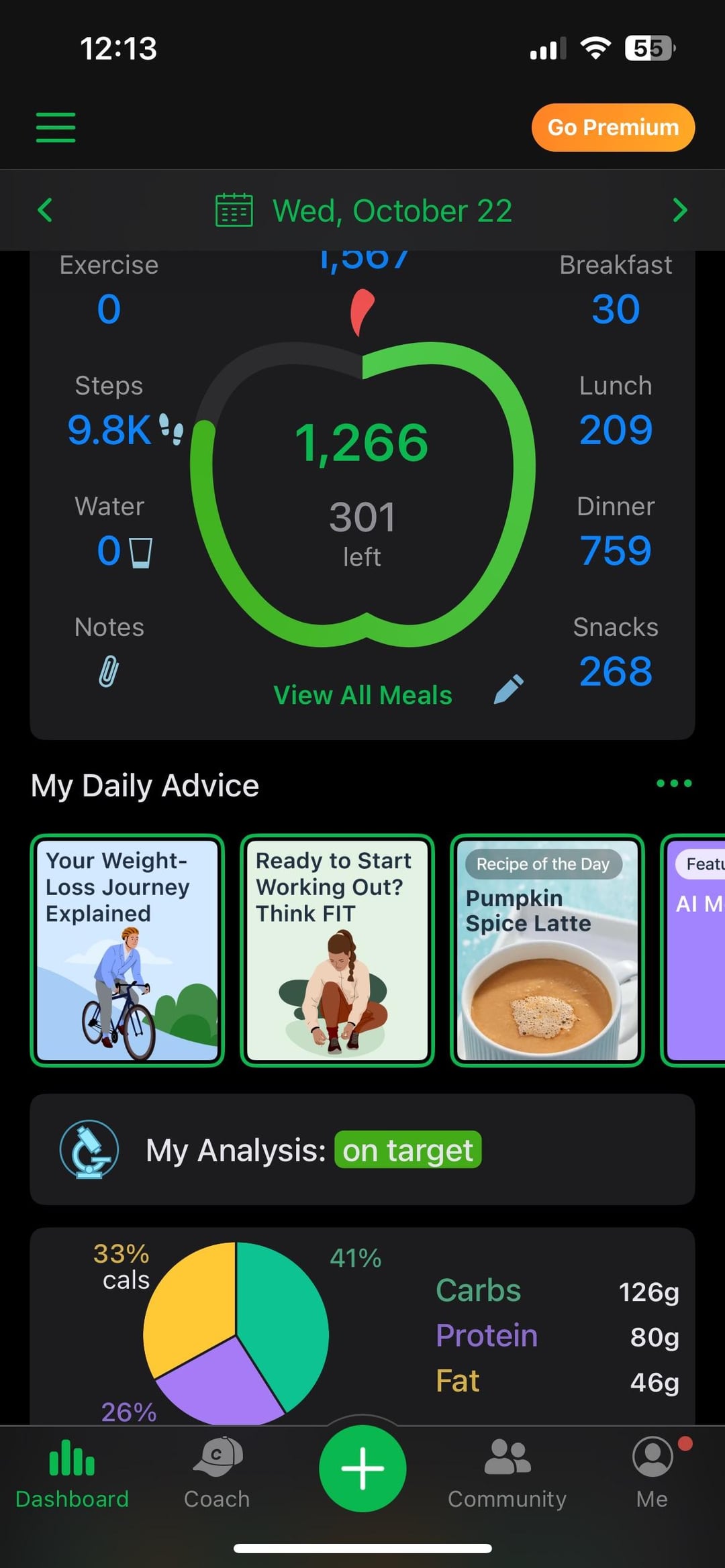 (Not pictured) breakfast: coffee + 0 sugar coffee creamer from coffee mate 30 cal